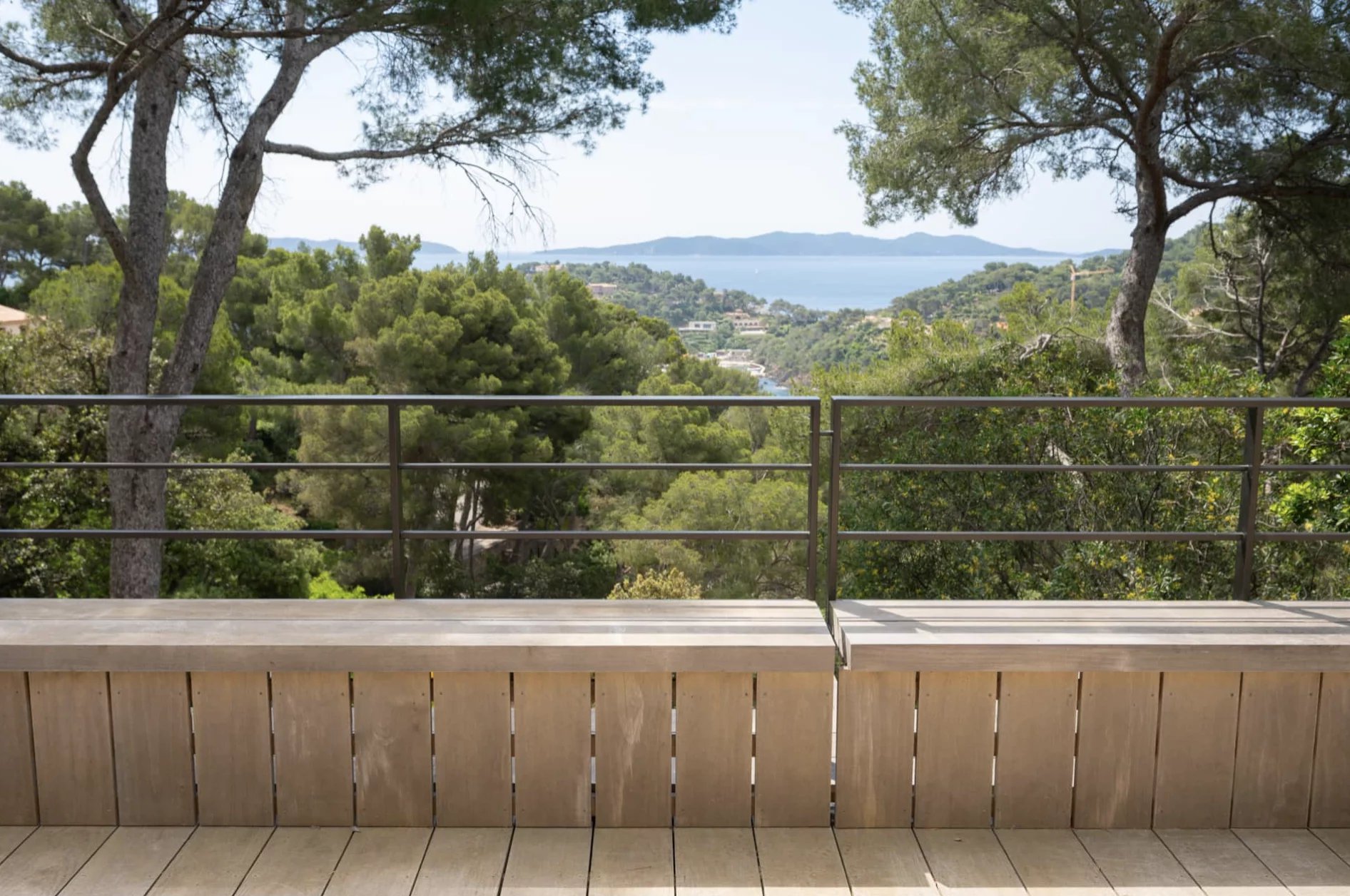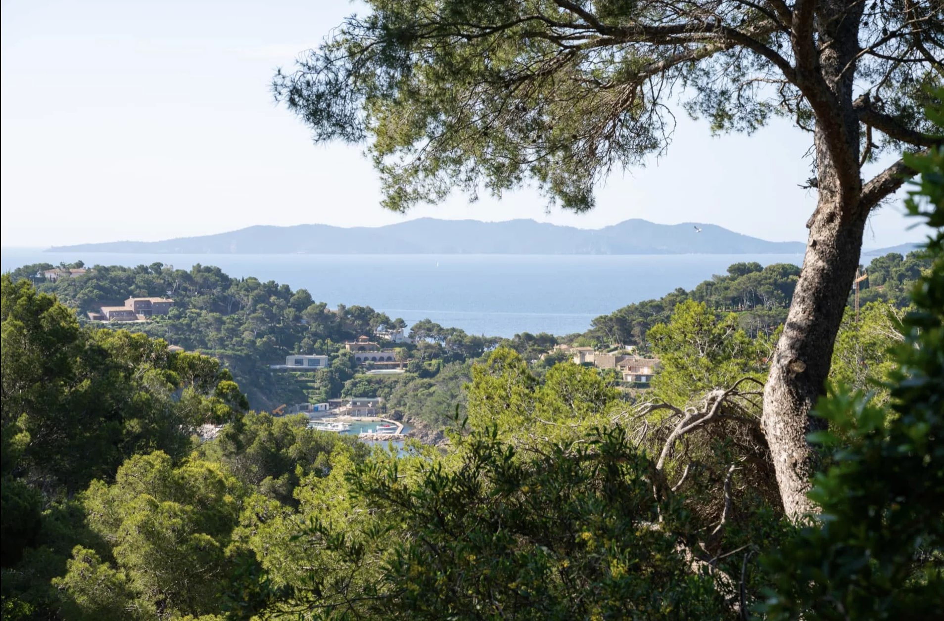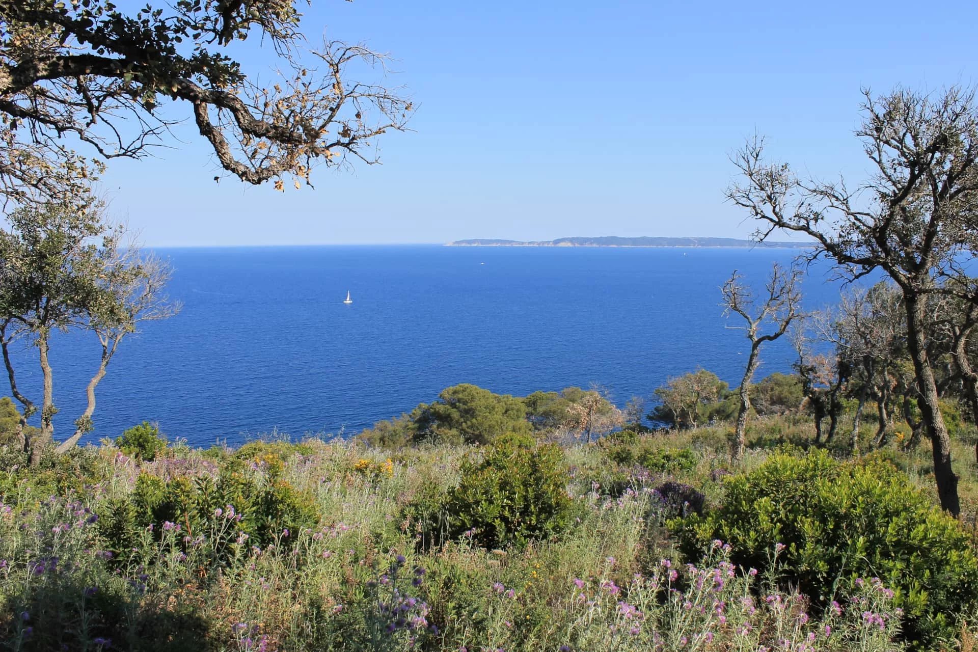 Bercée par le bruit des vagues, la villa profite d’un magnifique terrain sauvage et endémique avec une exposition Sud et une merveilleuse vue mer sur la pointe du Cristaou, Port Cros et le port du Pradet.