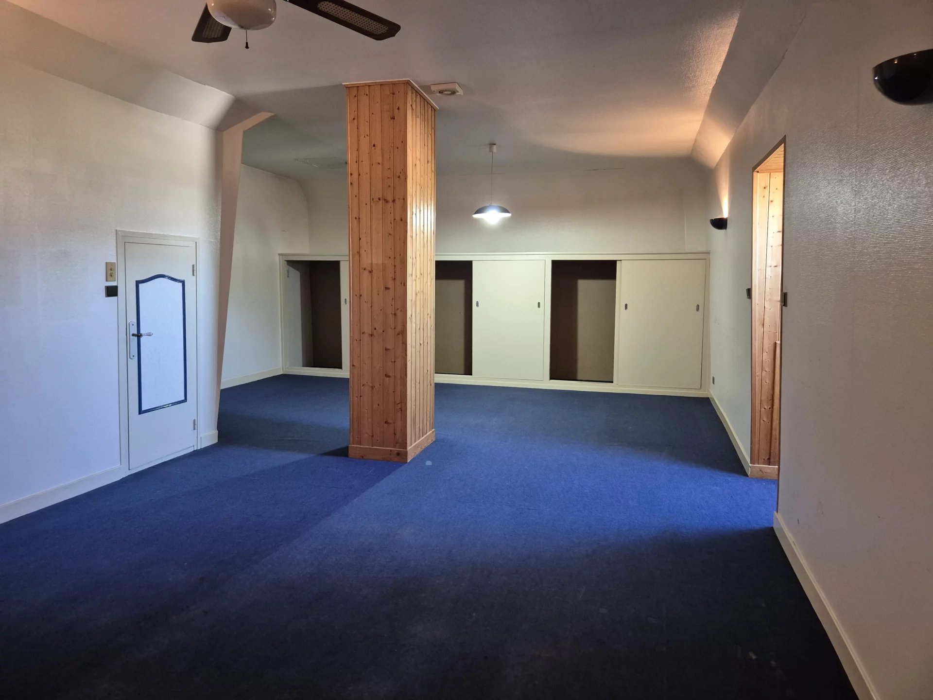 La maison comprend deux entrées indépendantes et se compose au rez de chaussée : d'une cuisine équipée, d'un salon-séjour de 50m² avec cheminée (insert), de 2 wc, d'une chambre parentale avec placard mural et salle de bains, d'une deuxième chambre avec placard et salle d'eau (cabine de douche) et d'une troisième chambre avec rangement ainsi qu'une pièce borgne communiquant avec la deuxième entrée, un autre wc et deux autres pièces. L'étage se compose d'une salle de bains avec wc, d'une grande pièce mansardée côté Nord et un couloir avec des rangements dessert un bureau, deux autres chambres et un vaste salon en partie mansardé au Sud.