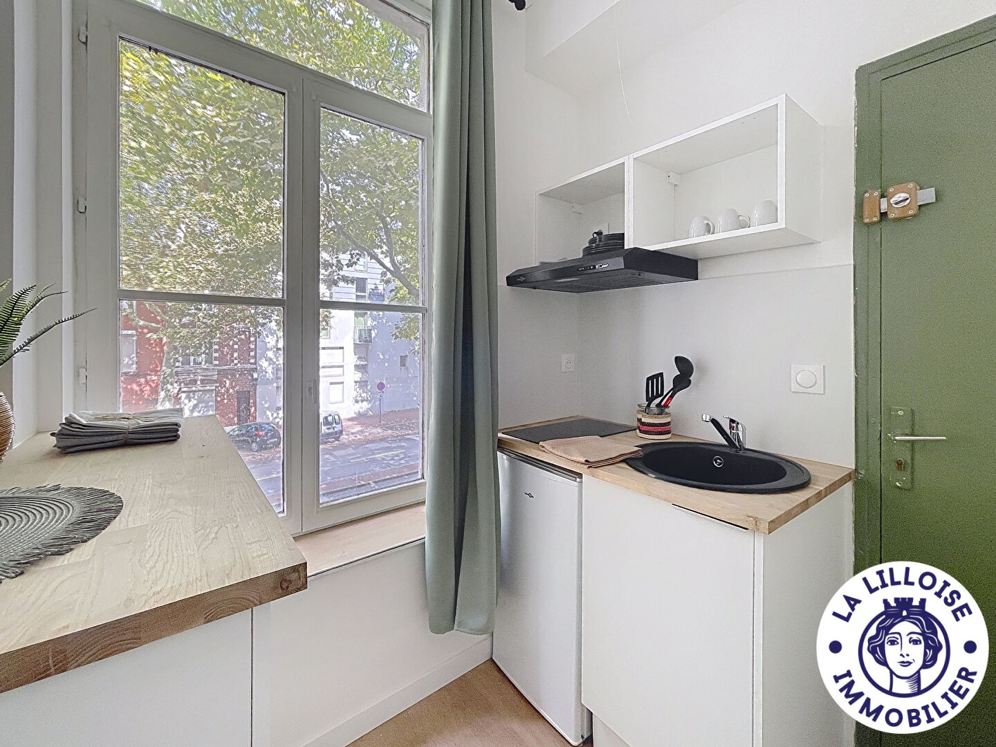 La Lilloise Immobilier vous propose ce bel appartement rénové avec modernité. Il se compose d'une pièce principale comprenant une kitchenette, un coin salon/nuit avec télévision et bureau, d'un espace dressing avec une machine à laver et d'une salle de bain avec WC. Disponible au 18 Décembre 2025.