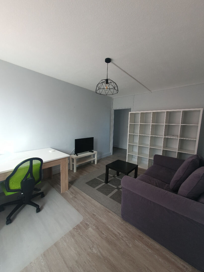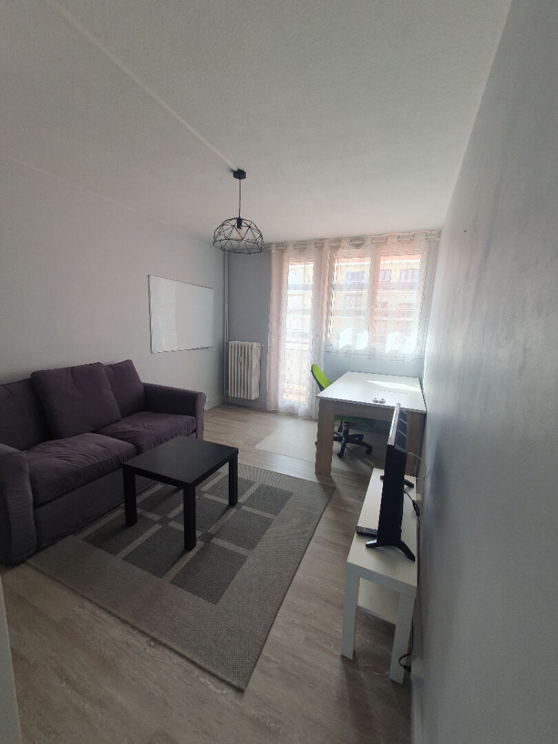 ST ETIENNE BERGSON-34 RUE BERGSON emplacement idéal tram et commerces au pied de l'immeuble-T2 entièrement meublé de 41m² avec balcon-8ème étage d'une copropriété calme et sécurisé-Séjour avec canapé, grand bureau, balcon-Une cuisine séparée entièrement équipée (plaques, four, machine à laver, table, chaises, vaisselle...)-Une chambre avec dressing-Salle d'eau avec douche et WC-Nombreux rangements-Double vitrage PVC-Stationnement possible en bas de l'immeuble -Cave-LOYER 480 euros + 110 euros de charges (chauffage, eau chaude, ascenseur, entretien immeuble)-Disponible de suite