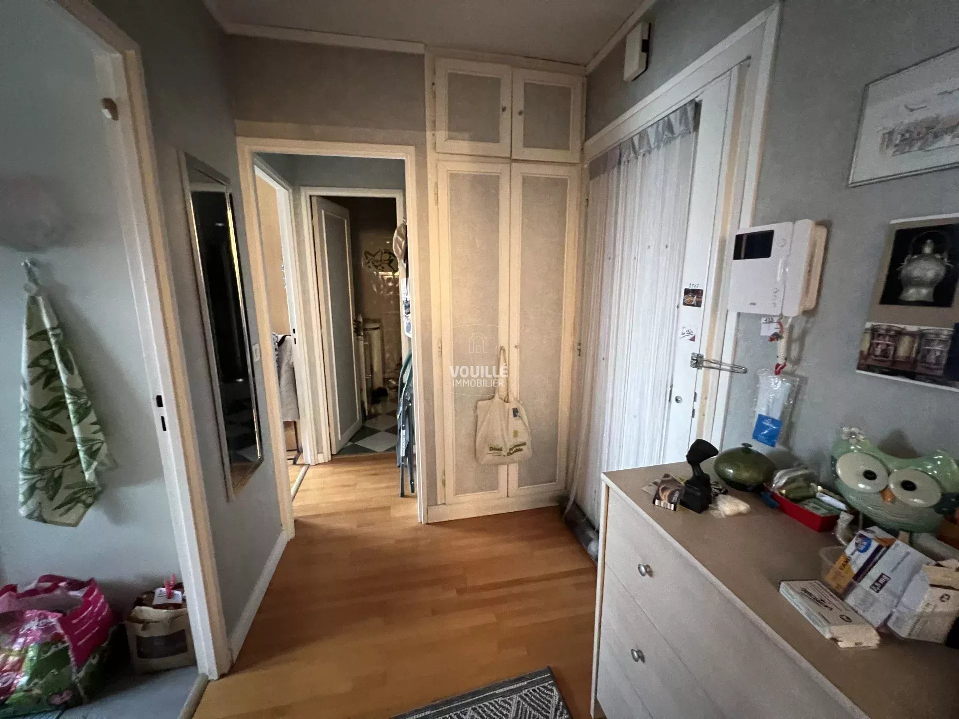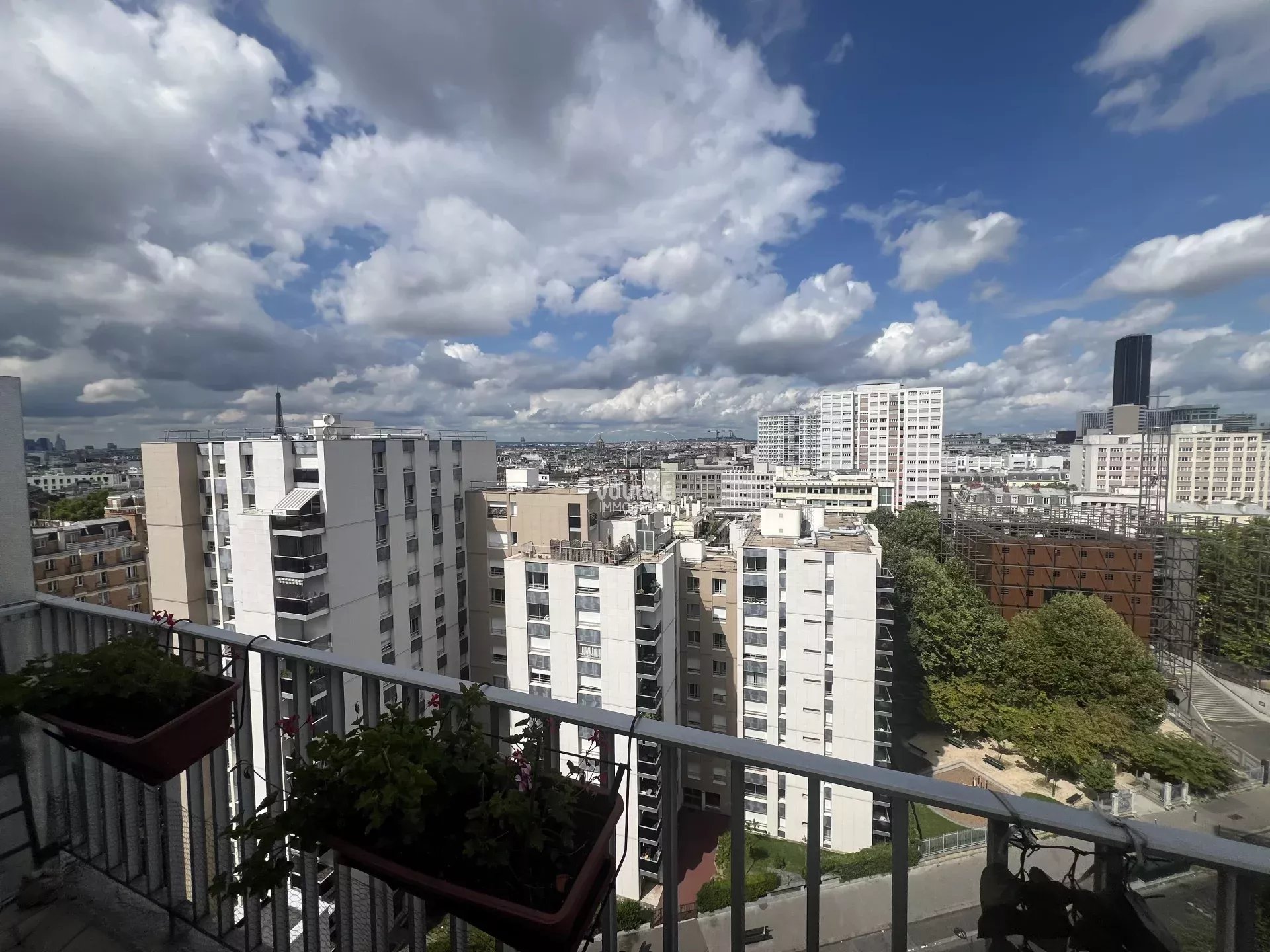 l'appartement bénéficie d'un très bon plan avec une entrée desservant toutes les pièces : le séjour, la cuisine, une chambre et la salle d'eau avec toilettes. Un grand balcon filant, large et agréable de 11 mètres carrés, communique avec le séjour et la chambre et bénéficie d'une belle vue dégagée à 180 degrés sur les principaux monuments de Paris. Une grande cave saine de 6 mètres carrés complète l'appartement.
