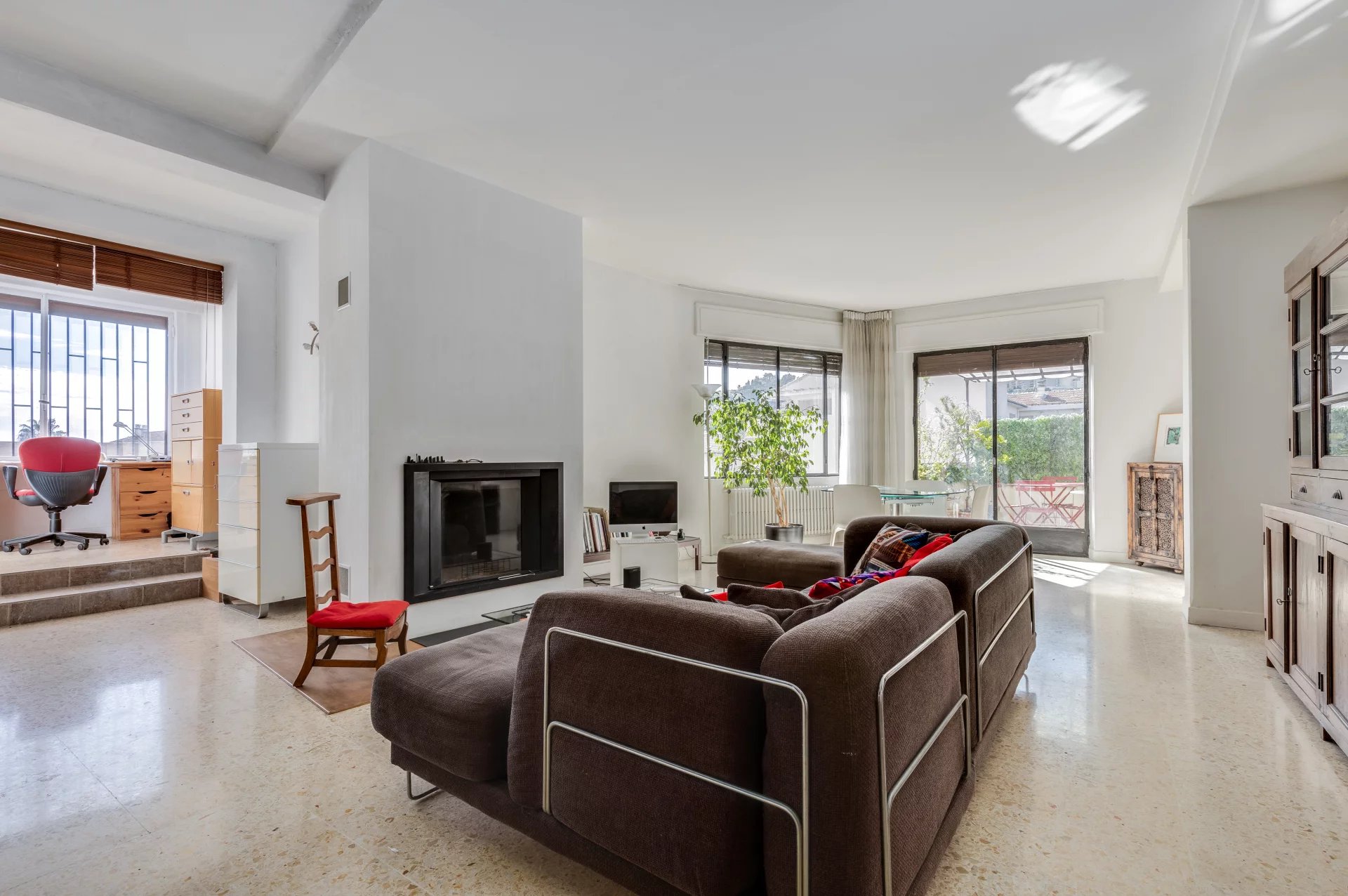 Agencé telle une maison, un accès indépendant mène vers le premier extérieur de cet appartement familial de 5 pièces. D'une superficie de 133m², sa quadruple exposition lui confère une douce luminosité tout au long de la journée.Dès l'entrée, l'appartement vous accueille depuis sa coursive fleurie, sur un spacieux séjour de 43m² agrémenté d'une cheminée et d'une terrasse de 12m². La cuisine indépendante s'inscrit dans la continuité du séjour, abritée d'une large verrière. La présence d'un deuxième salon et d'un coin bureau viennent ajouter une note intimiste aux espace de vie existants. L'espace nuit se compose ensuite de trois chambres, d'une salle de bains et d'un WC indépendant. La découverte de ce bien se termine en tout singularité avec un spacieux toit terrasse à aménager et vue dégagée sur les environs.