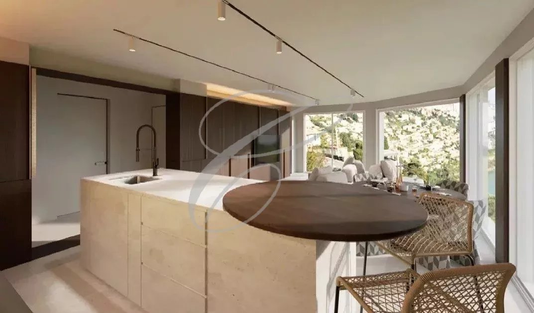 Aux portes de Monaco, rare appartement villa entièrement rénové de 4 pièces avec grande terrasse et jardin vue panoramique mer et Monaco. Deux parking complètent ce bien. Possibilité de piscine.