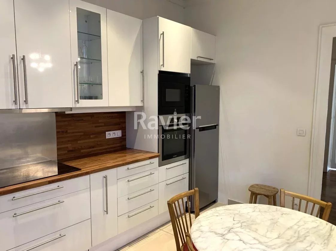 Dans un immeuble ancien au 1er étage, l'appartement se constitue comme suit : entrée, salon, salle à manger, cuisine aménagée et équipée, quatre chambres, WC, deux salle de bain avec WC, salle d'eau avec WC, buanderie, placards, dégagements.