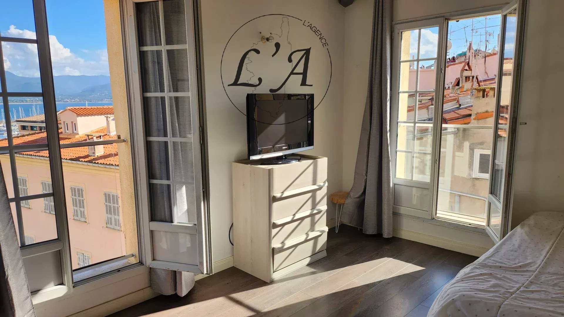 À l’étage, deux chambres avec placards intégrés profitent elles aussi d’une vue mer rare en centre-ville. Une salle de bains, des toilettes séparées, un bureau/dressing et une mezzanine polyvalente enrichissent la fonctionnalité du bien. L’ensemble s’inscrit dans une distribution fluide et agréable à vivre. Climatisation réversible, double vitrage, immeuble soigné, copropriété bien gérée, absence de travaux : cet appartement réunit les critères d’un investissement pérenne dans l’immobilier Ajaccio, qu’il s’agisse d’une résidence principale ou d’un pied-à-terre haut de gamme.
