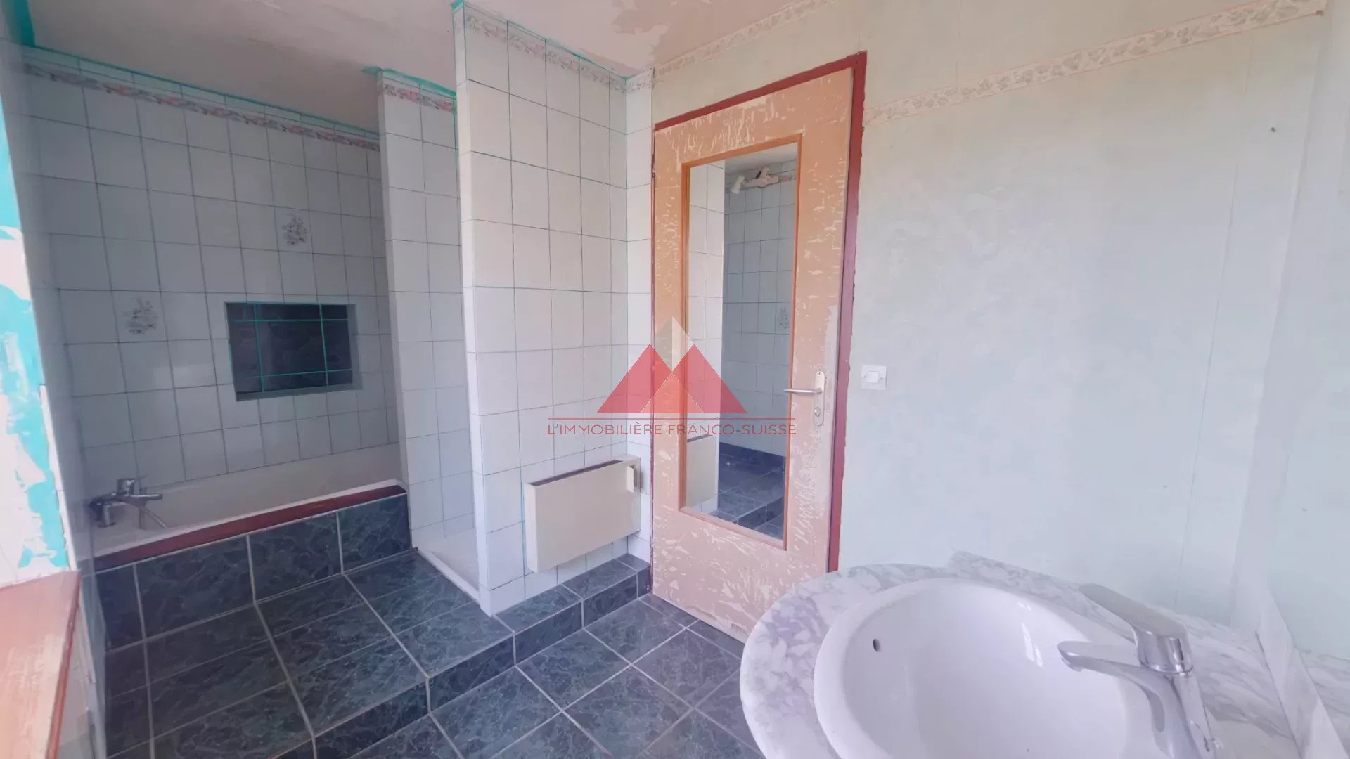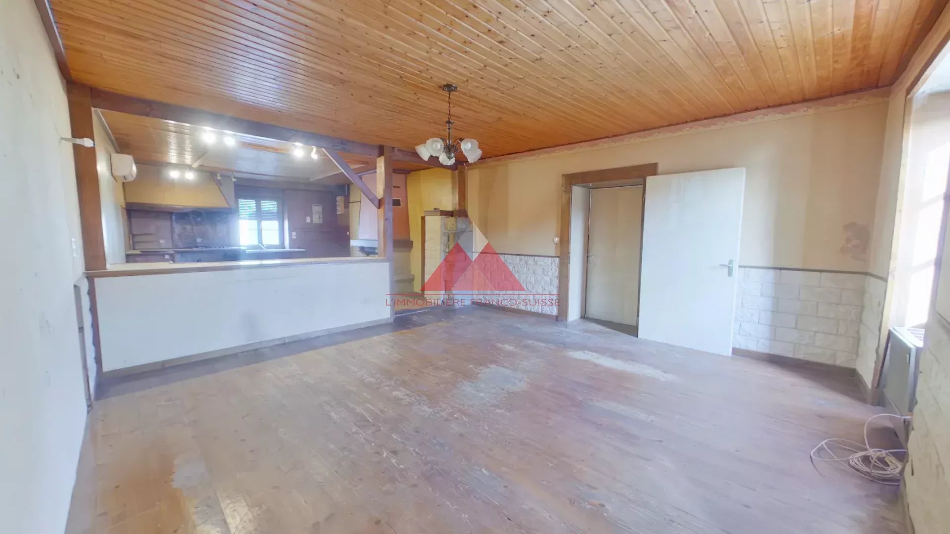 Maison chauffée avec pompe à chaleur et cheminée en complément, menuiseries double vitrage, assainissement individuel.