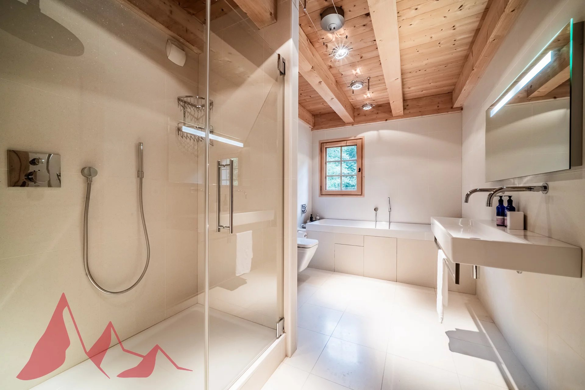À l'intérieur, le chalet fait une impression immédiate. Le vaste espace de vie et de salle à manger ouvert avec son plafond voûté crée un cœur de maison spectaculaire et accueillant. Sept chambres spacieuses avec salles de bains privatives offrent un hébergement haut de gamme pour la famille et les invités, tandis que des installations de spa dédiées, une salle de jeux/TV et un local à skis pratique offrent le summum du confort et de la commodité.