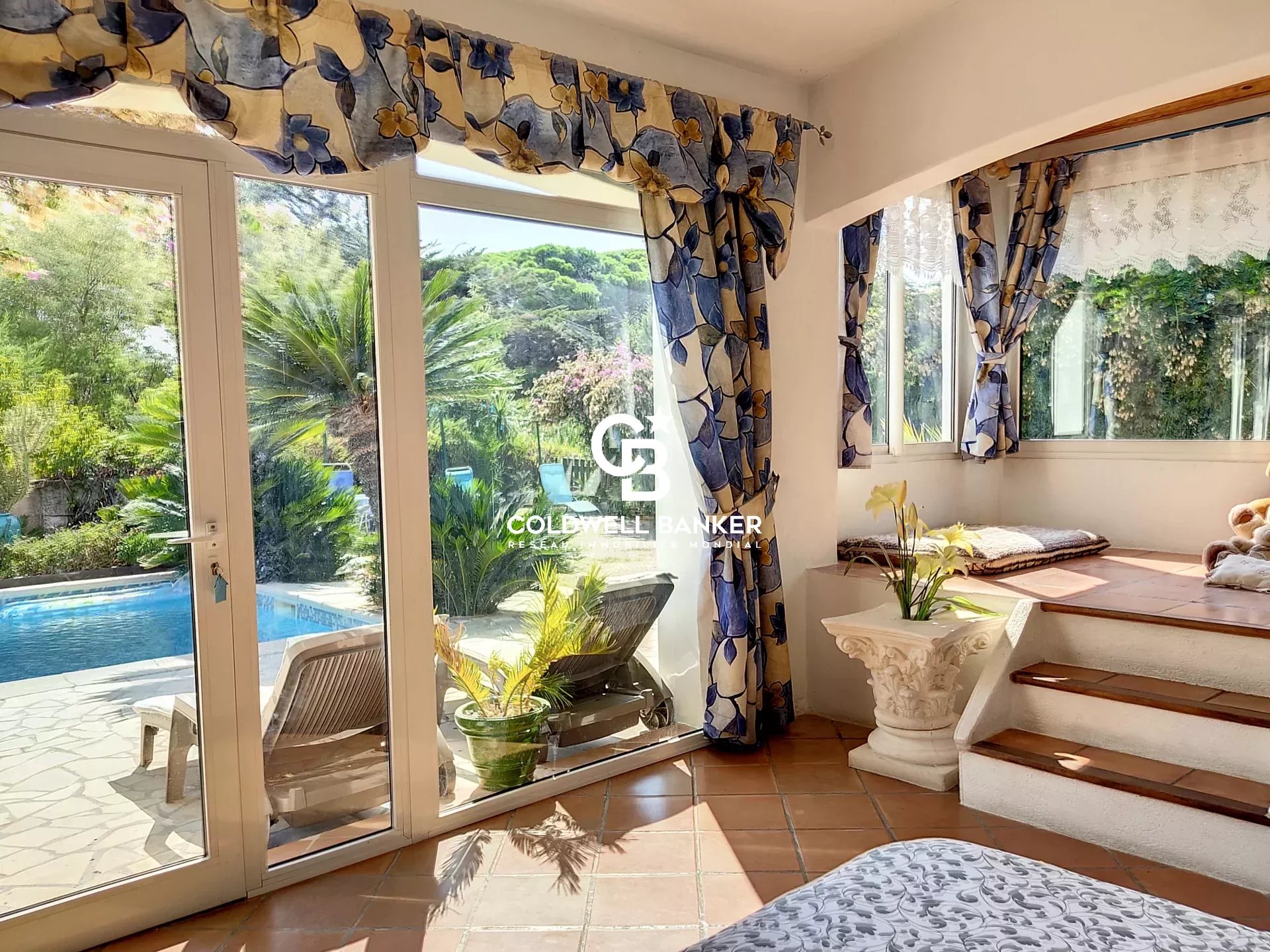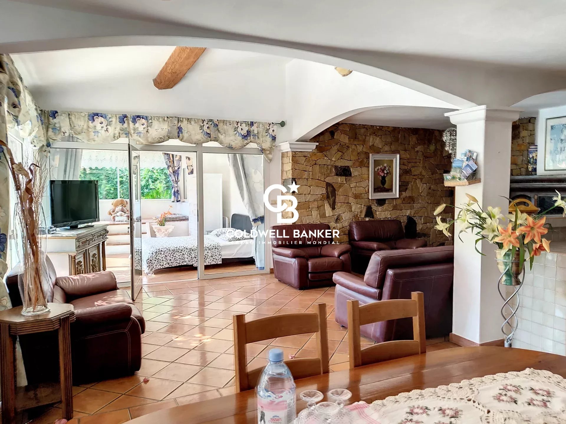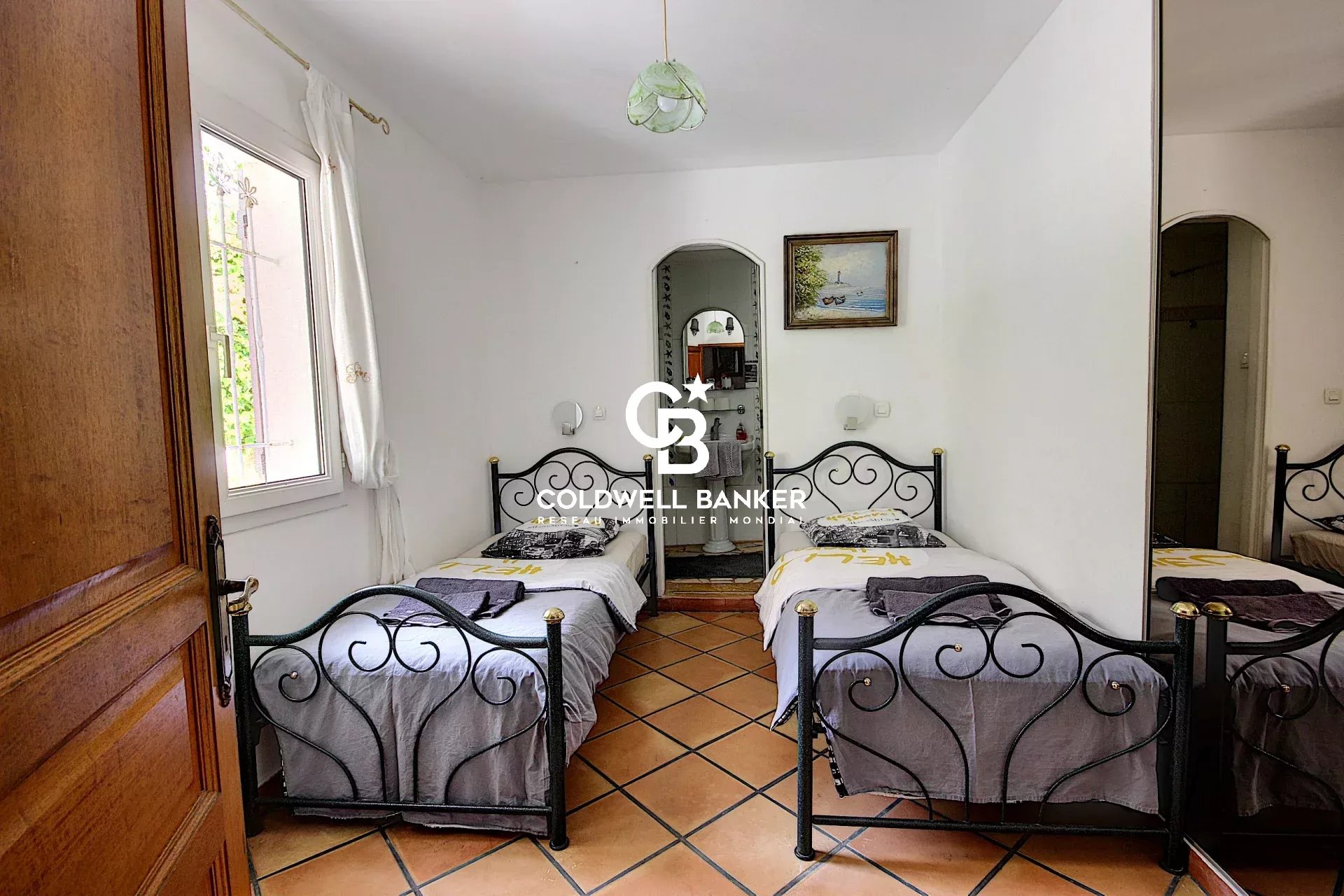 Découvrez le charme authentique de cette villa provençale composée de trois habitations pouvant être réunies en une seule propriété familiale d’exception. 1. La villa principale – 133 m² de plain-pied Elle offre un vaste séjour avec cheminée, une cuisine équipée ouverte sur la salle à manger, 4 chambres dont 2 suites avec salle d’eau privative, une salle de bain et un WC indépendant. Le tout s’ouvre sur un magnifique terrain plat et paysagé, agrémenté d’une terrasse couverte, d’une cuisine d’été, ainsi que d’une piscine idéale pour les moments de détente. 2. Appartement T3 indépendant (au même niveau) Parfait pour recevoir ou pour de la location, il se compose de 2 suites, d’un salon, d’une cuisine et d’une terrasse privative. 3. Appartement T2 avec vue mer (rez-de-chaussée) Accessible de plain-pied par une entrée indépendante, il propose une suite, un salon avec cuisine ouverte, des terrasses, une salle d’eau et un WC.