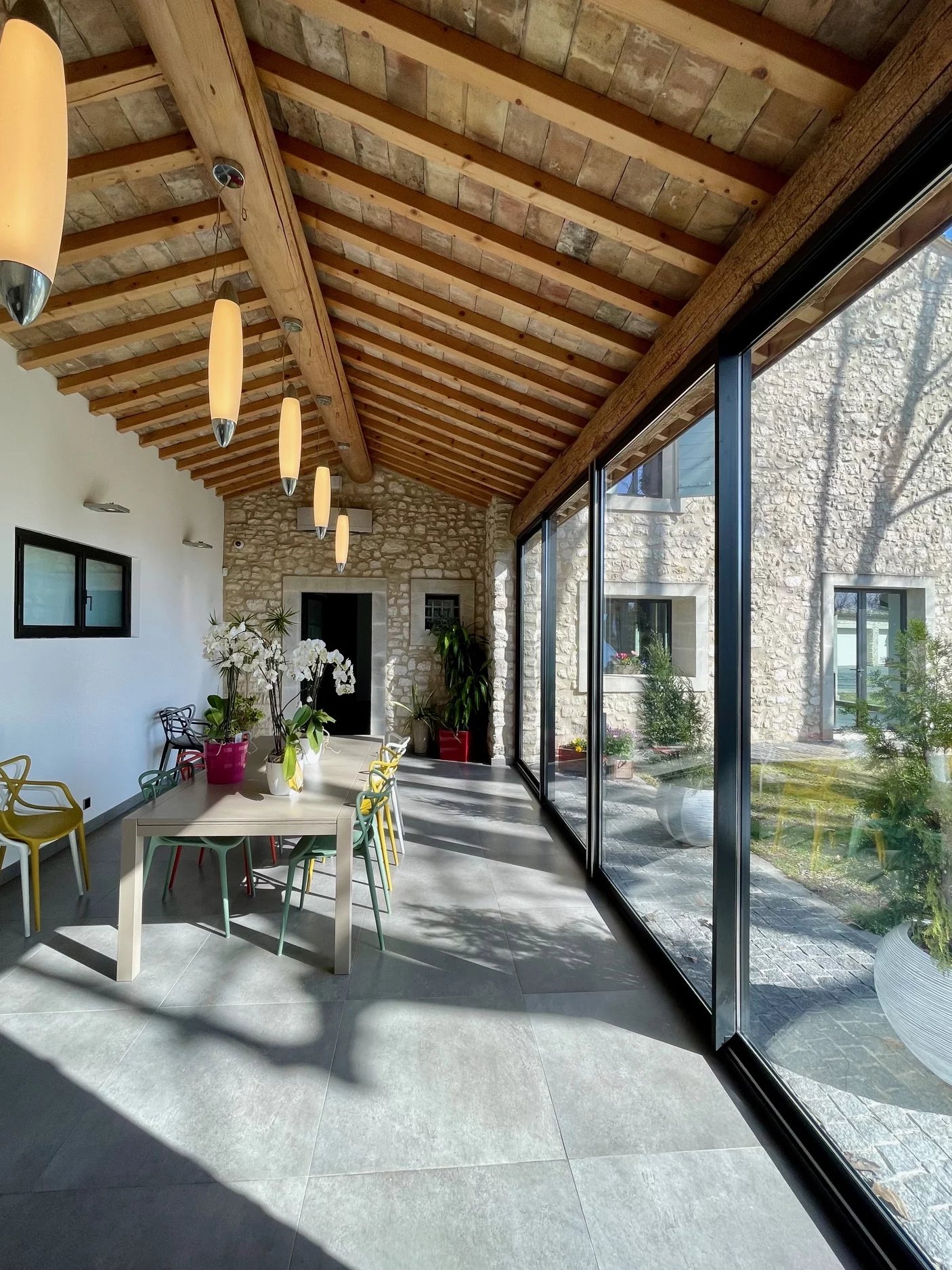 A 60 mn de l'aéroport international de Marseille-Marignane, 30 d'Avignon TGV et 5 mn du village des antiquaires de L'Isle Sur La Sorgue, au calme, superbe Mas du XIXème entièrement restauré d'environ 460 m² sur 3 niveaux aux volumes généreux et finitions soignées avec des matériaux nobles, séjour cheminée d'environ 100 m², cave à vins, cuisine équipée, salle repas ouverte sur l'extérieur, escalier en pierres naturelles, palier, salon, 5 chambres avec 5 salles d'eau wc et dressing, espace détente SPA, garages carrelés et isolès 110 m², terrain clos d'environ 7400 m², paysagé et arboré d'oliviers et platanes. Permis de construire accepté pour une piscine.