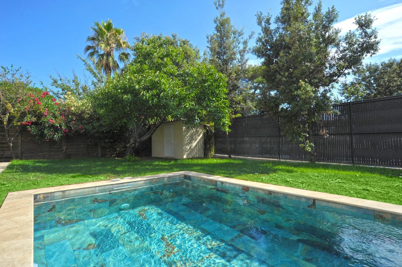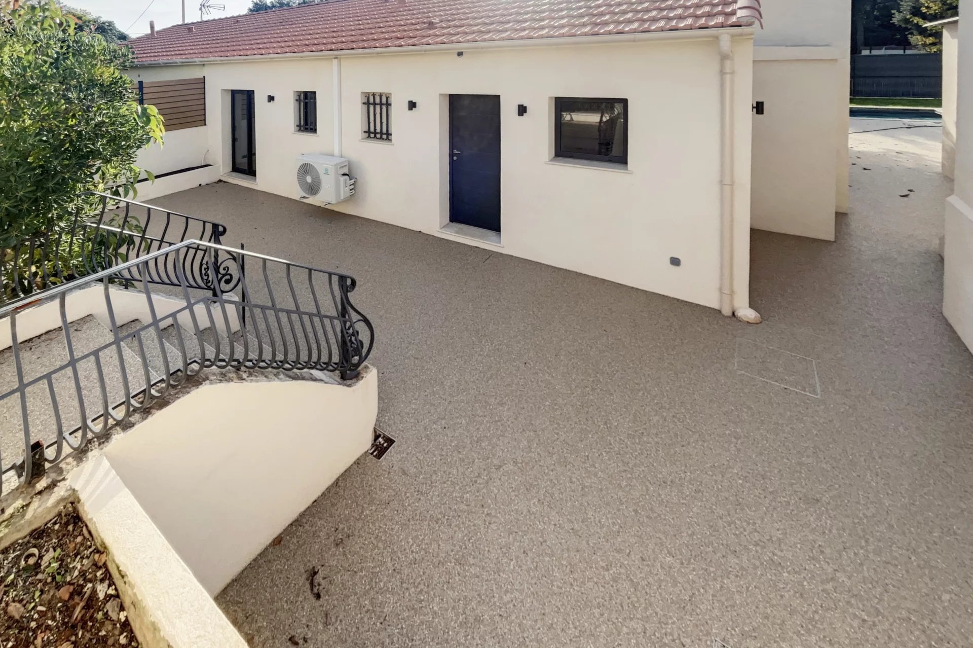 Située à quelques minutes de l'autoroute A8 et à quelques minutes de Sophia Antipolis, d'un supermarché et d'écoles, cette villa jumelée vient d'être entièrement rénovée, avec notamment un nouveau toit, de nouvelles menuiseries extérieures, une nouvelle installation électrique et une nouvelle plomberie. Les finitions comprennent des matériaux haut de gamme et une cuisine entièrement équipée ouvrant sur un salon de 50 m² avec des plafonds mansardés, un poêle à bois et de grandes baies vitrées donnant sur le jardin et la piscine. La villa comprend un hall d'entrée, 2 chambres chacune avec salle de bains attenante, des toilettes indépendantes et une buanderie. Adjacente à la maison se trouve un studio indépendant où tous les travaux nécessaires ont été effectués pour installer une salle de bains et une petite cuisine. Vous pouvez profiter des terrasses des deux côtés de la maison et la piscine 3x6 est équipée d'un système d'eau salée. Située dans une impasse avec un parking extérieur, la villa comprend un garage fermé avec une porte électrique pouvant accueillir 2 petites voitures ou une grande voiture et des scooters.
