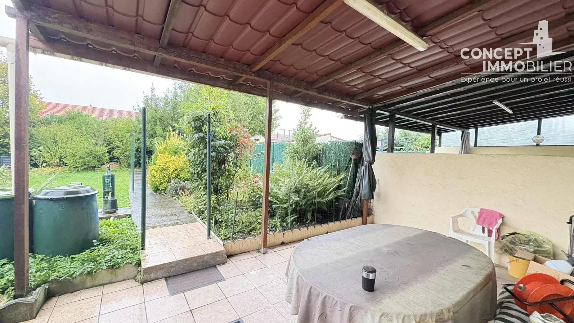 À l’extérieur, vous profiterez d’un jardin clos de 413 m², idéal pour les repas d’été, les jeux des enfants ou simplement pour flâner au soleil. Une terrasse couverte vous permettra d’en profiter par tous les temps. Le garage ajoute une vraie touche de praticité, et le chauffage au gaz assure un confort agréable tout au long de l’année.
