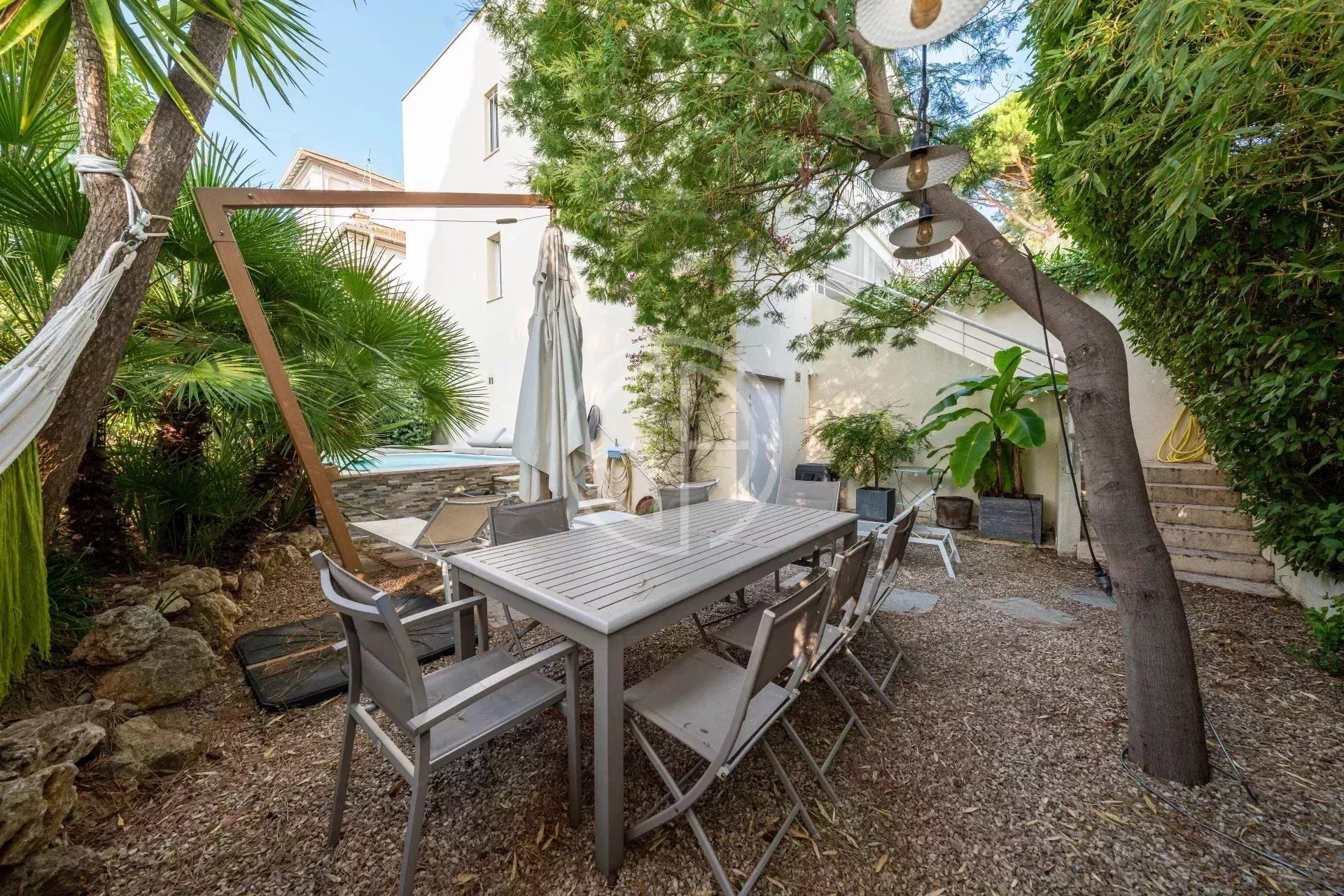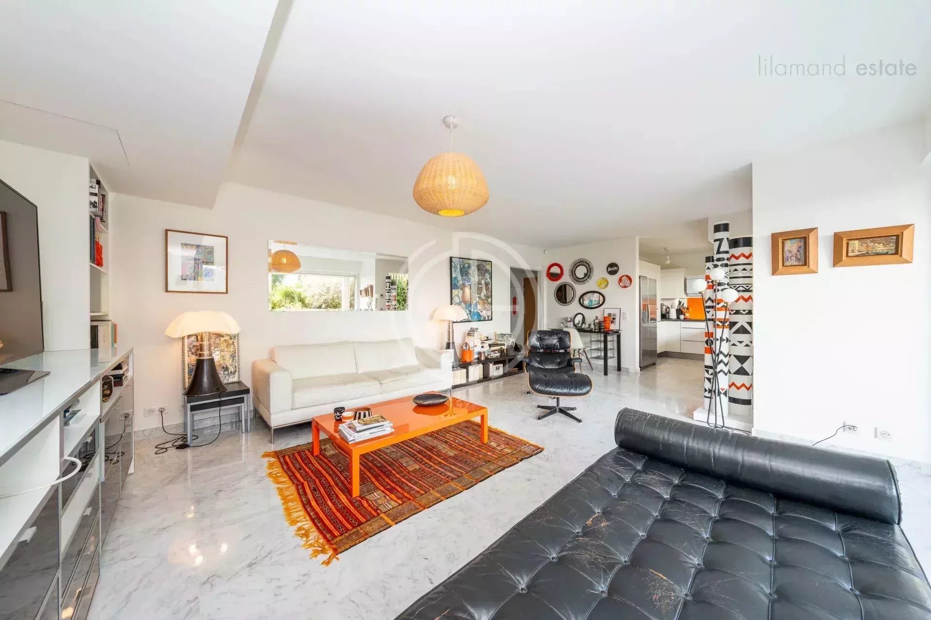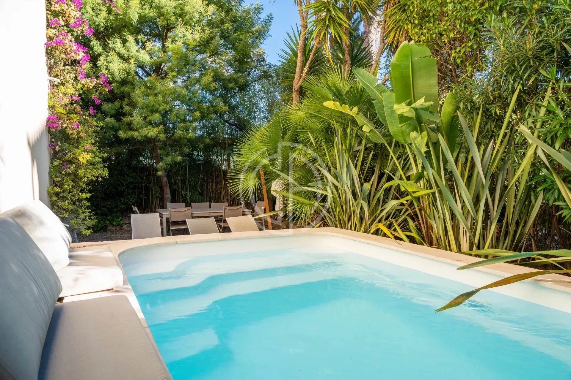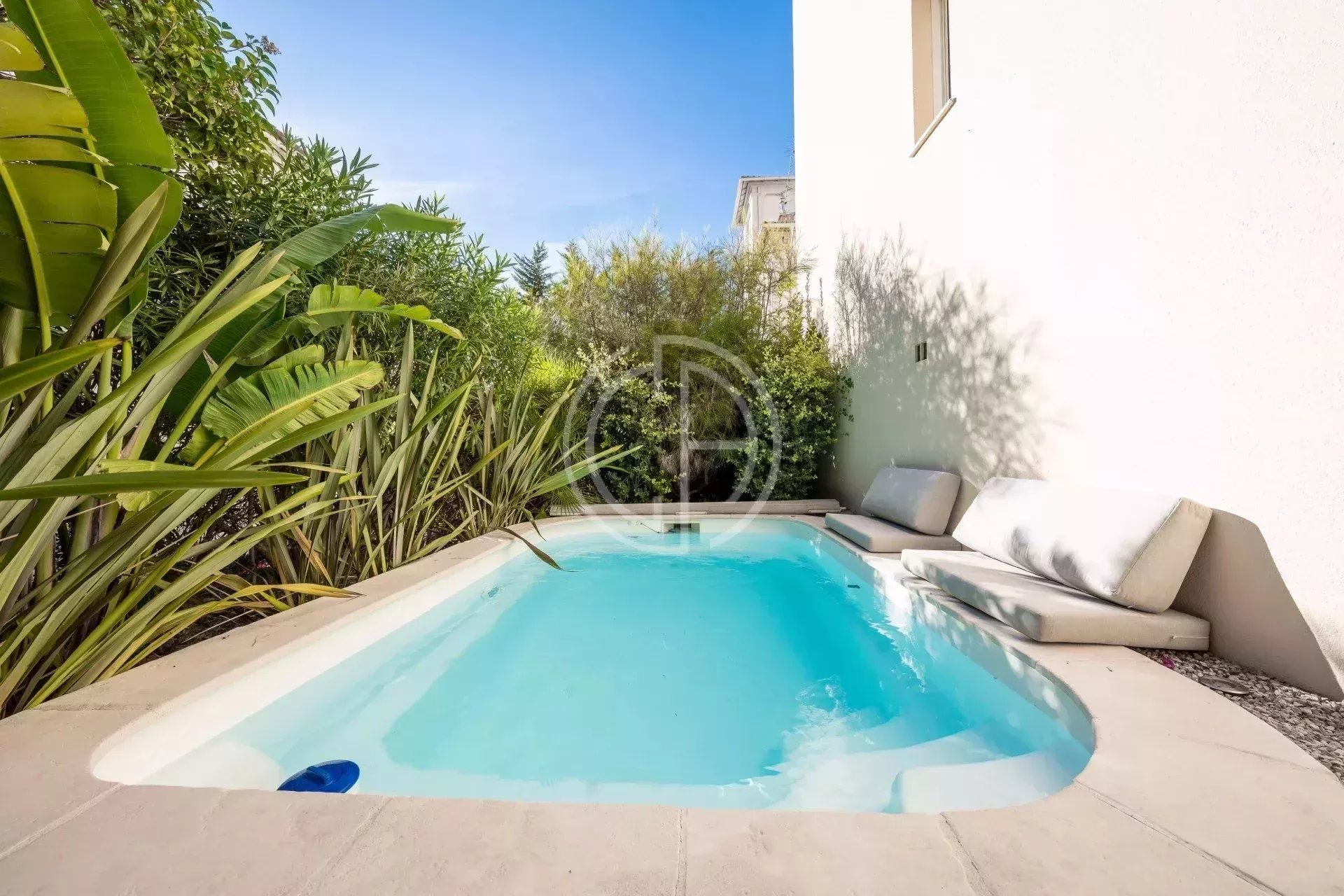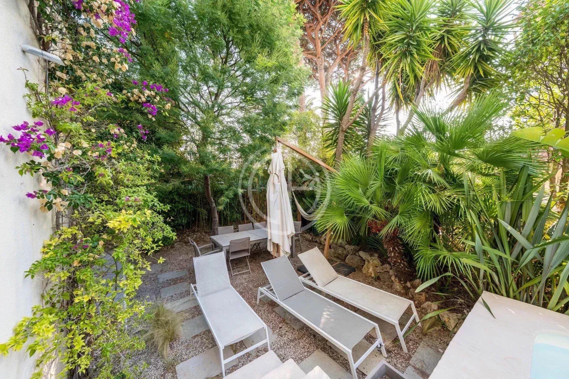 Proche du quartier très résidentiel du Petit Juas, dans une petite co-propriété familiale, magnifique rez-de-jardin totalement rénové aux atouts uniques! Telle une maison individuelle ce rez-de-jardin de 104,22 LC, vous enchantera. Il bénéficie en jouissance exclusive d’une grande terrasse de 25m2 et d’un jardin attenant et d’un deuxième espace jardin de 200m2 avec piscine chauffée, plein sud lovée dans la verdure et à l’abris de tous les regards. Le grand séjour de 49 m2 lumineux et ouvert sur la terrasse avec baies vitrées à galandage s’articule avec cuisine américaine équipée haut de gamme et espace salle à manger ouvert sur la verdure. L’espace nuit comprend 3 chambres, dont une en suite avec sa salle de bain, une salle de douche/wc. Elles sont toutes au calme absolu. Dans l’entrée : grands placards, wc invités et accès à une lingerie. En sous sol, accessible par un ascenseur 2 places de parking couverts, ainsi qu'une belle cave. Un cellier dans le jardin permet le rangement des outils de jardin et du mobilier d’été. Ses atouts uniques en font un appartement d’exception aux grands volumes et aux espaces extérieurs dignes d’une maison. Idéal pour une famille ou pour un pied à terre proche de toutes les commodités tout en étant au calme et dans la verdure. Nombre de lots 21.