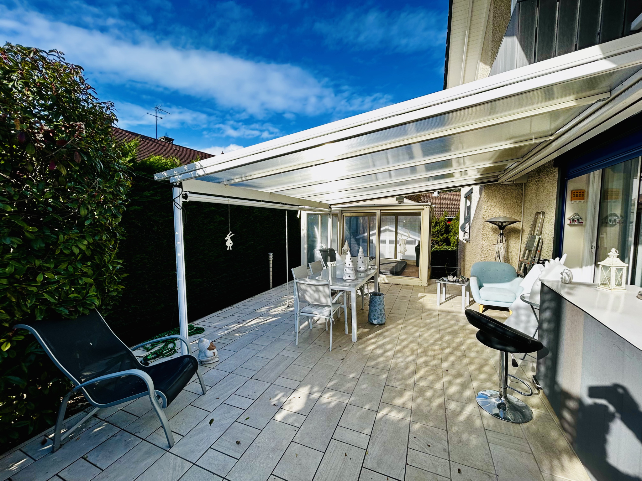 Idéalement située en fond d'impasse, découvrez cette maison à usage d'habitation d'une superficie de 92 m2 loi Carrez et 107 m2 au sol composée d'une cuisine équipée séparée, un bel espace de vie avec poële à bois donnant accès à une terrasse exposée S/O avec espace jacuzzi couvert, 3 chambres dont une au RDC, 2 SDBs et 2 wcs. Un sous-sol complet avec grand garage complète l'ensemble. Le tout sur une parcelle au calme de 522 m2. Rare sur le secteur. A visiter sans tarder.