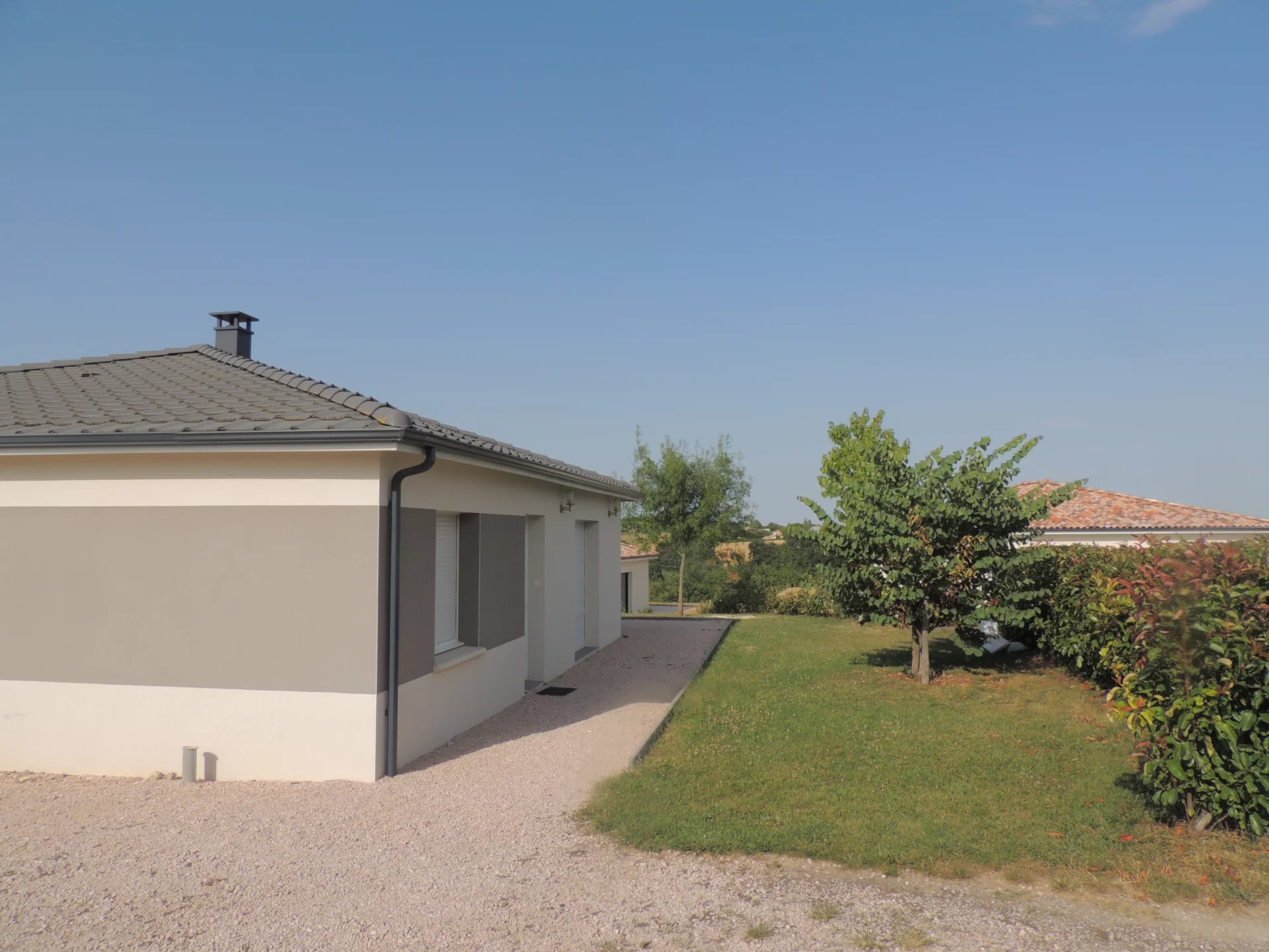 A 5 min d'Auch Maison récente de plain pied Type 4 d'environ 95m²habitables Grande pièce de vie avec cuisine américaine équipée, cellier buanderie attenant, 3 chambres avec placards, salle d'eau, wc indépendant. Chauffage central avec pompe à chaleur + Climatisation réversible. Garage attenant Jardin clôturé d'environ 1000m². Libre mi janvier