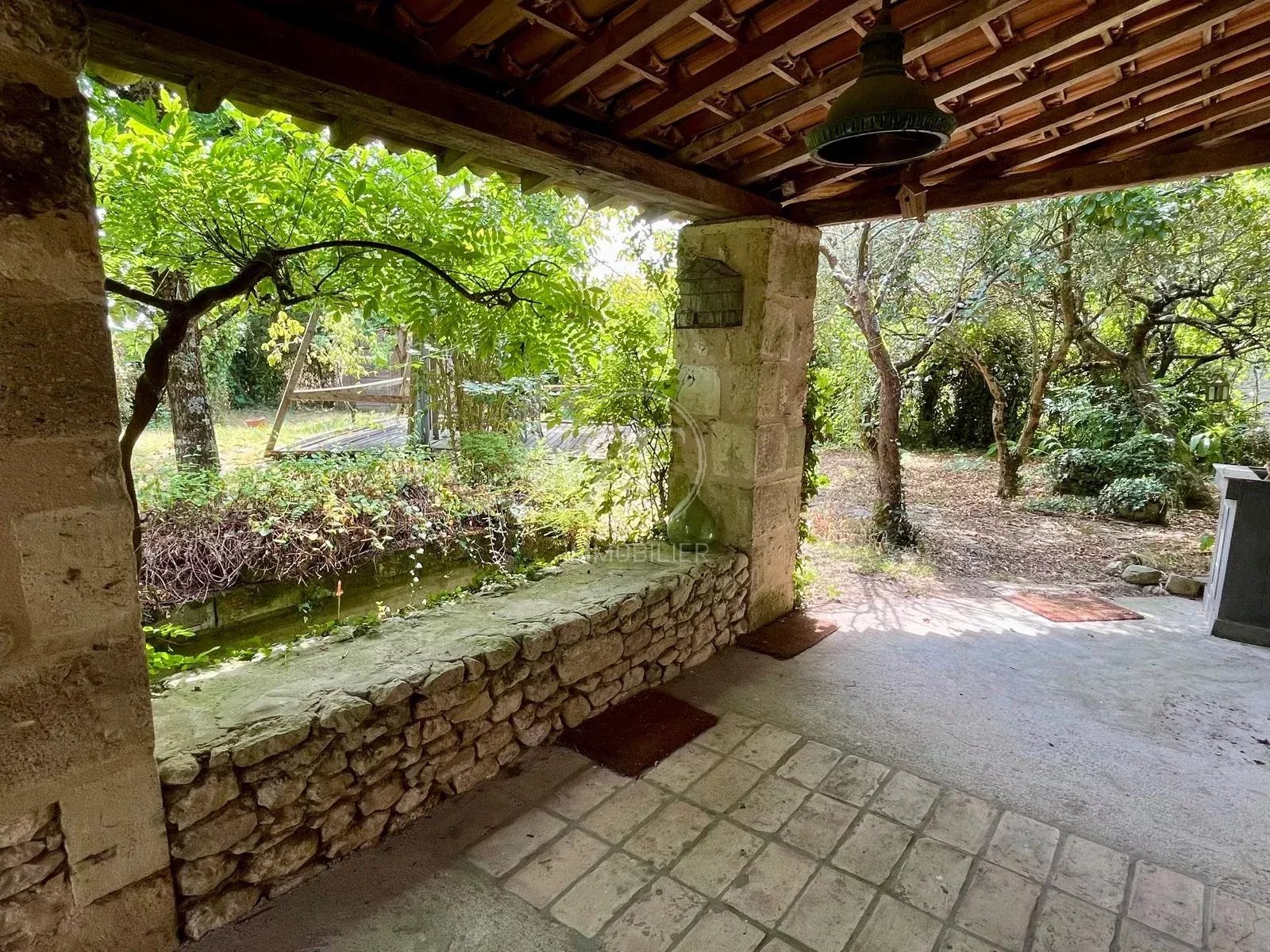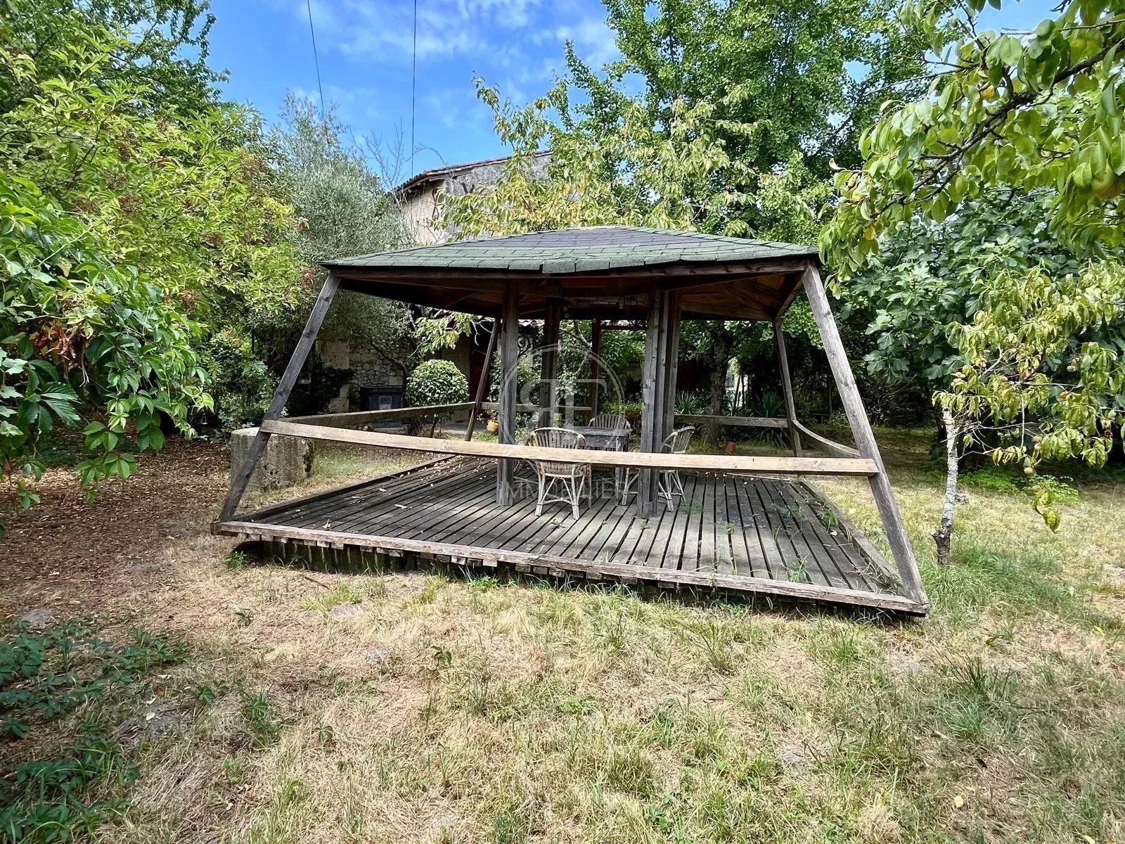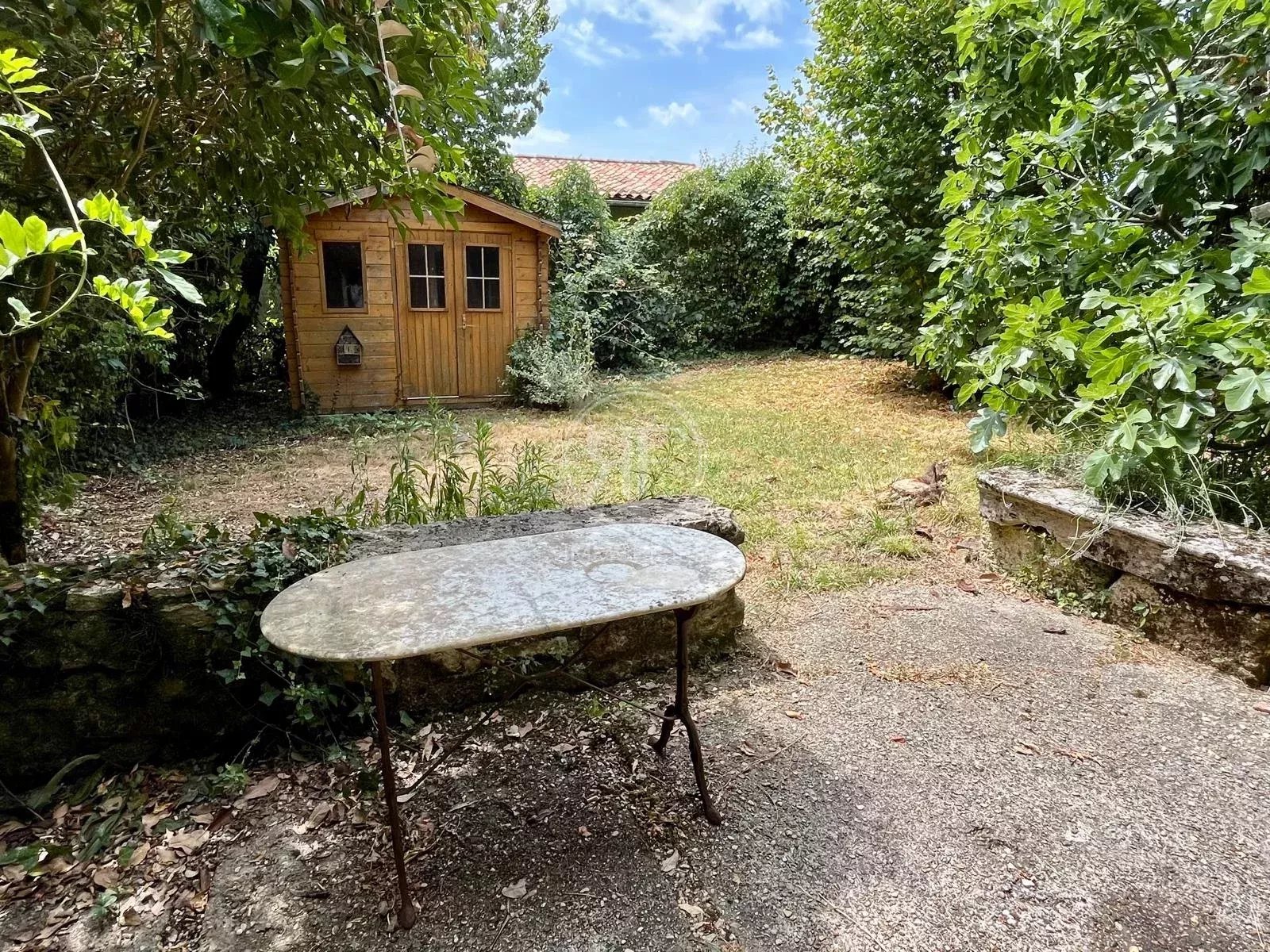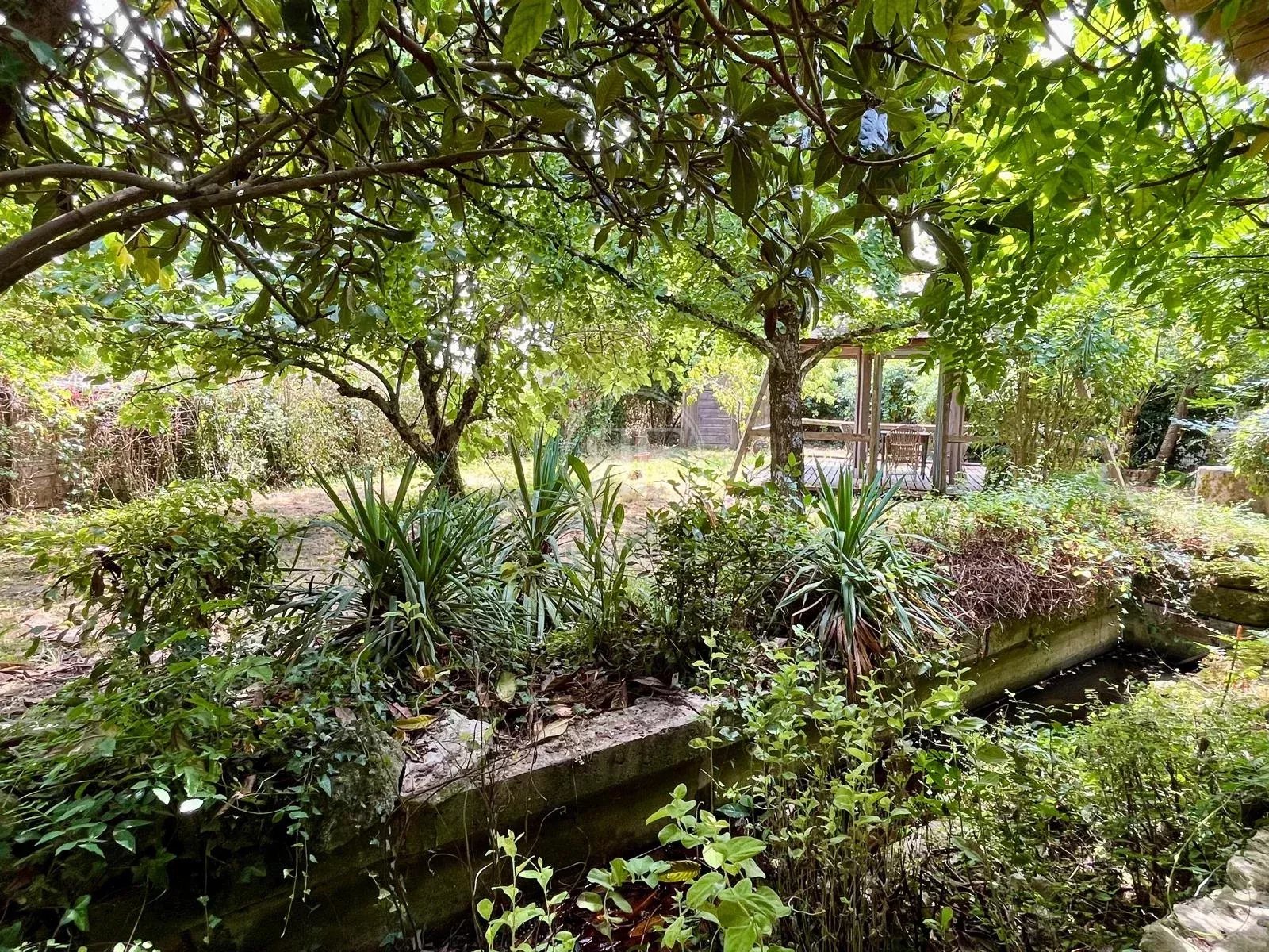 Le jardin, aménagé et paysagé, d'environ 5000m² dispose d'un verger et d'une piscine (à réhabiliter).
