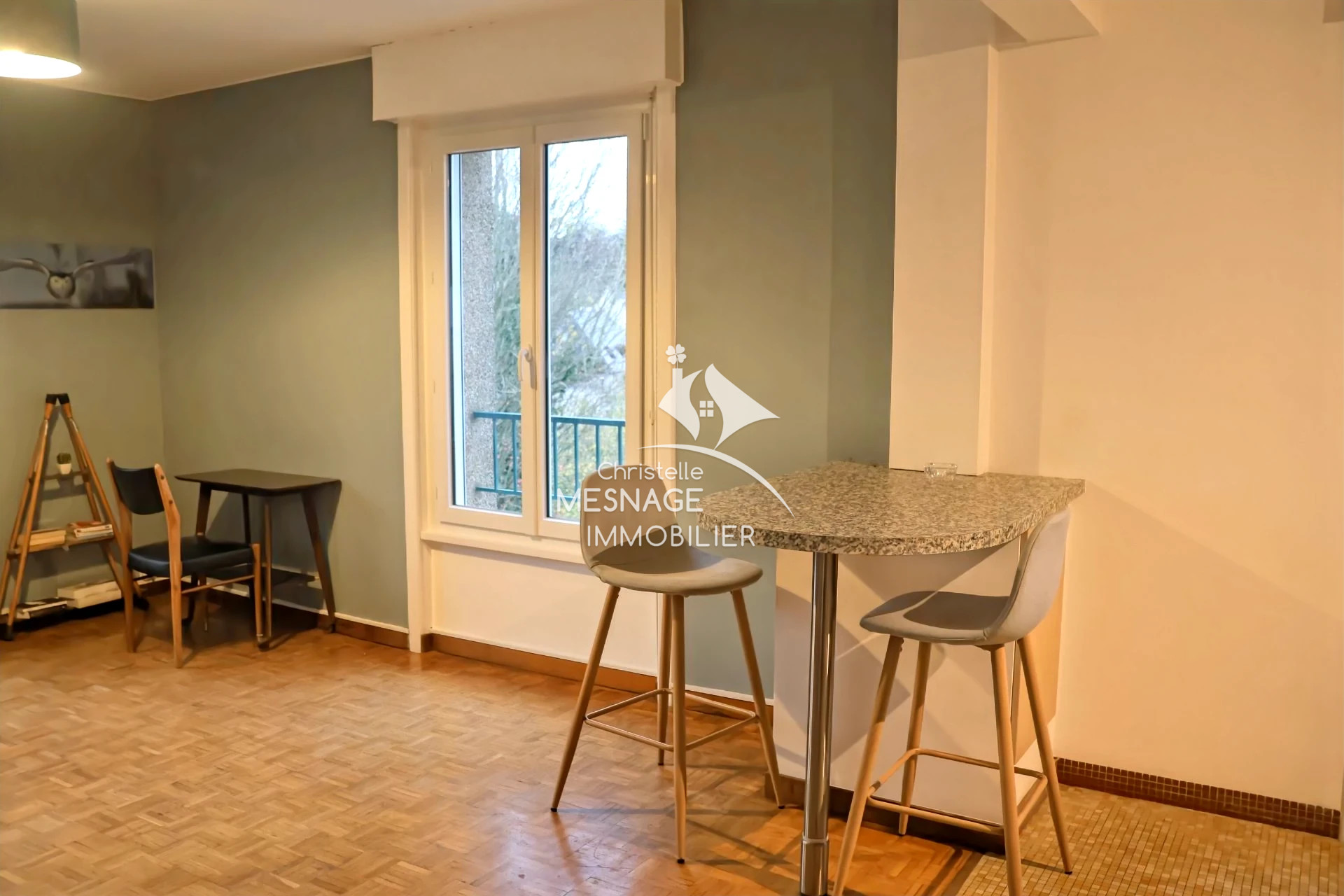 À louer chez Christelle Mesnage : DINAN- CENTRE VILLE - Bel appartement T3 MEUBLÉ de 61m² avec vue dégagée, au 2ème étage sans ascenseur offrant : une entrée une cuisine équipée ouverte sur le séjour, 2 chambres, une salle de bains, un wc, un garage privatif, un grenier. LIBRE AU 1er DÉCEMBRE 2025