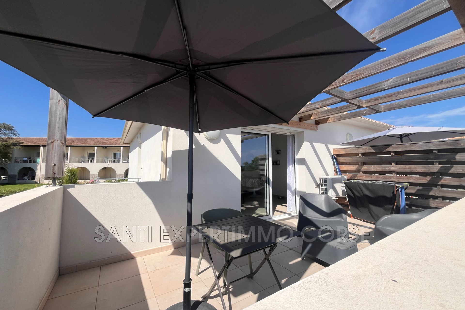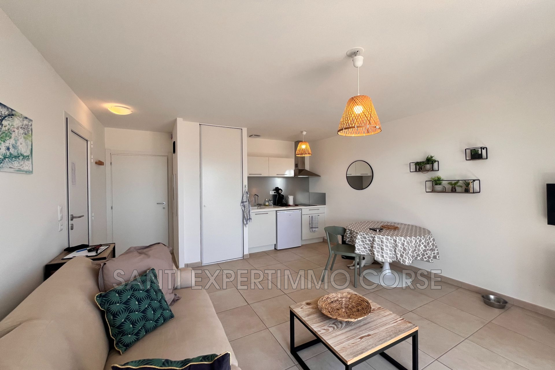 Santi Expertimmo Corse a le plaisir de vous présenter en exclusivité ce superbe studio avec vue mer, vendu meublé, situé au 1?? étage, dans une résidence sécurisée de construction récente, avec piscine et à quelques pas de la plage de sable de Bravone.