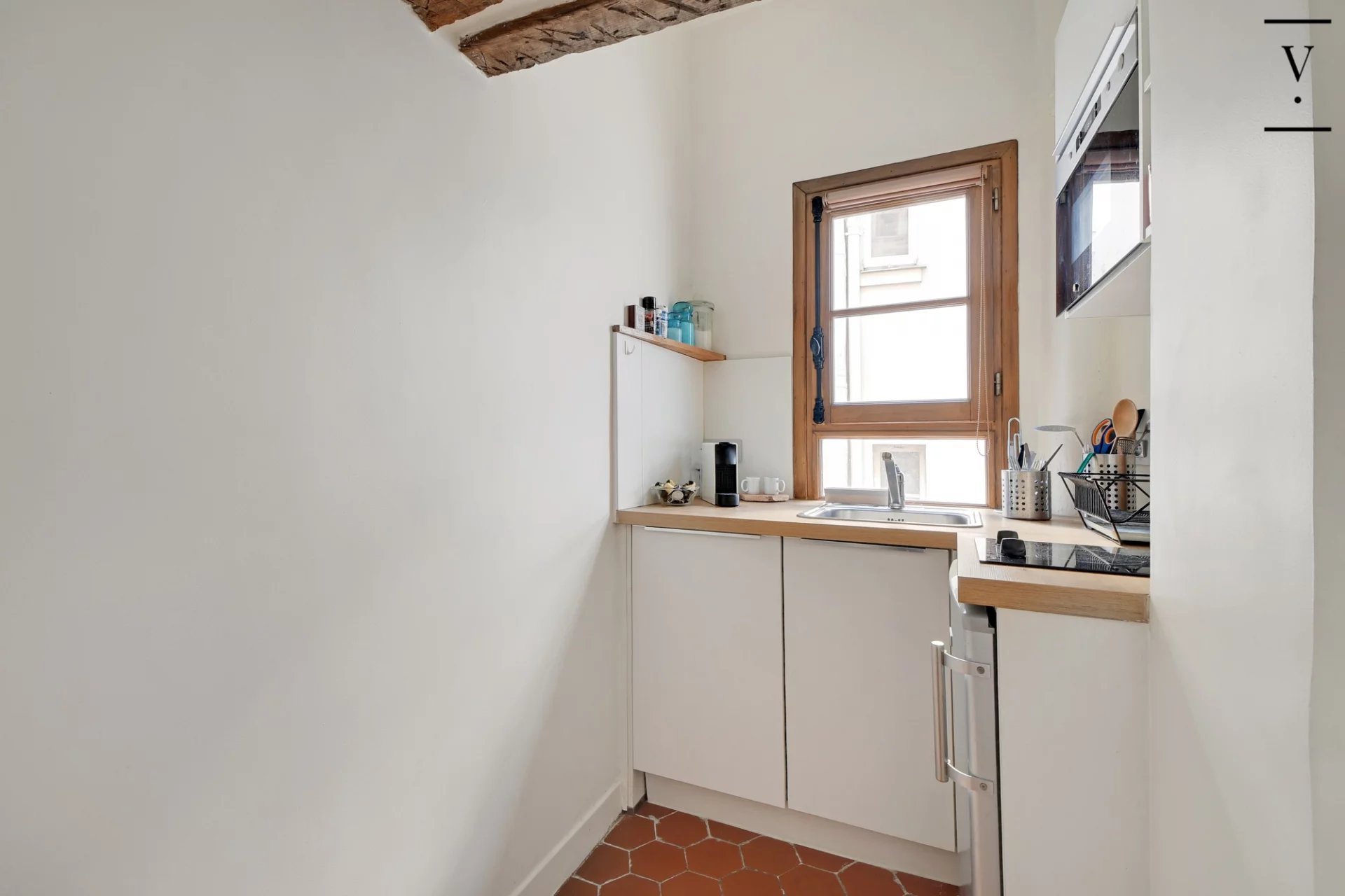 Entre le musée Picasso et la rue de Bretagne, au 3ème étage par escalier d'un immeuble ancien bien entretenu, l'agence Villaret Marais vous propose en exclusivité un studio de 22 m² en parfait état. Situé au calme sur cour, il se compose d'une pièce principale avec salon/chambre, d'un coin repas, d'une cuisine et d'une salle d'eau avec WC. Une belle hauteur sous plafond et des tomettes anciennes apportent beaucoup de charme à ce studio idéalement situé. Une cave en sous-sol complète ce bien.