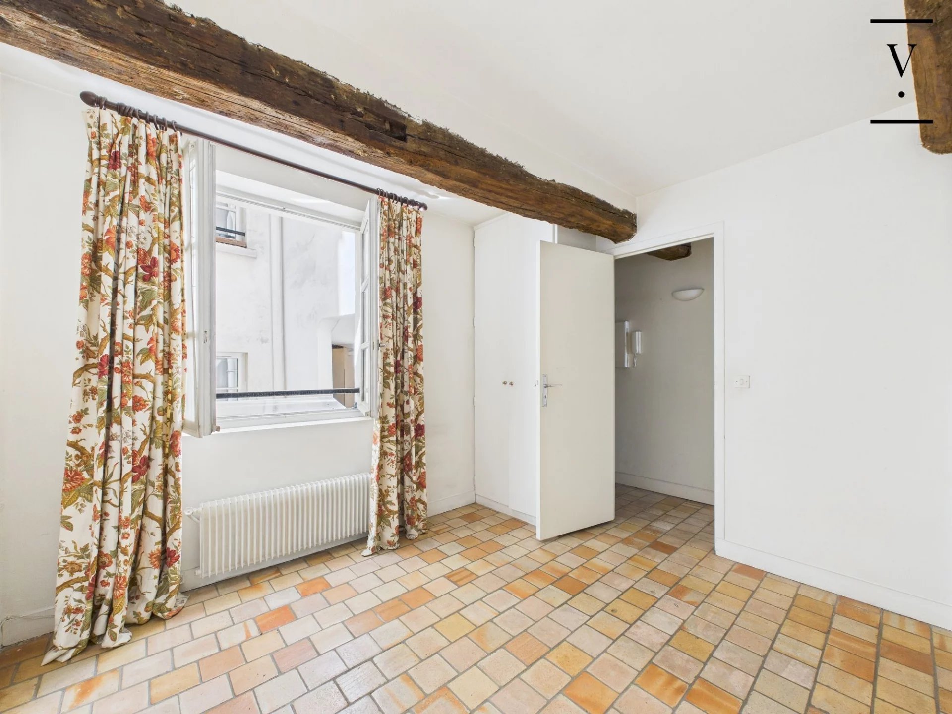 En plein coeur du Marais historique, dans un immeuble ancien avec ascenseur, appartement de 2 pièces au 3ème étage, composé d'une entrée, d'une chambre sur petite cour, d'une salle de bains avec WC, d'un séjour sur rue et d'une cuisine. Rénovation à prévoir. Bon plan.