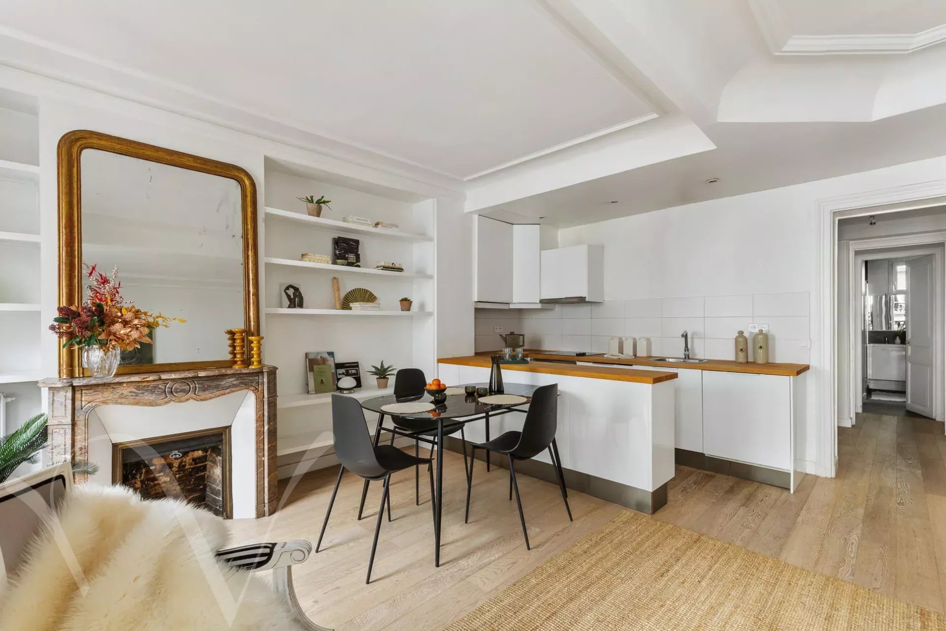 Exclusivité - A deux pas du Bon Marché et de Sèvres Babylone, dans un immeuble fin XIXe en pierre de taille, un appartement traversant de 47,12 m² loi Carrez au deuxième étage accessible par escalier ; il se compose, d'une entrée, d'un grand séjour avec cuisine ouverte éclairé par deux grandes fenêtres, orientées sud, un grand placard, une chambre sur cour au calme, une salle de douche avec toilette, un grand dressing. Emplacement recherché. Eléments d'origine conservés (parquet, moulures, cheminées) - nombreux rangements -Commerces de proximités. Une cave en sous sol.