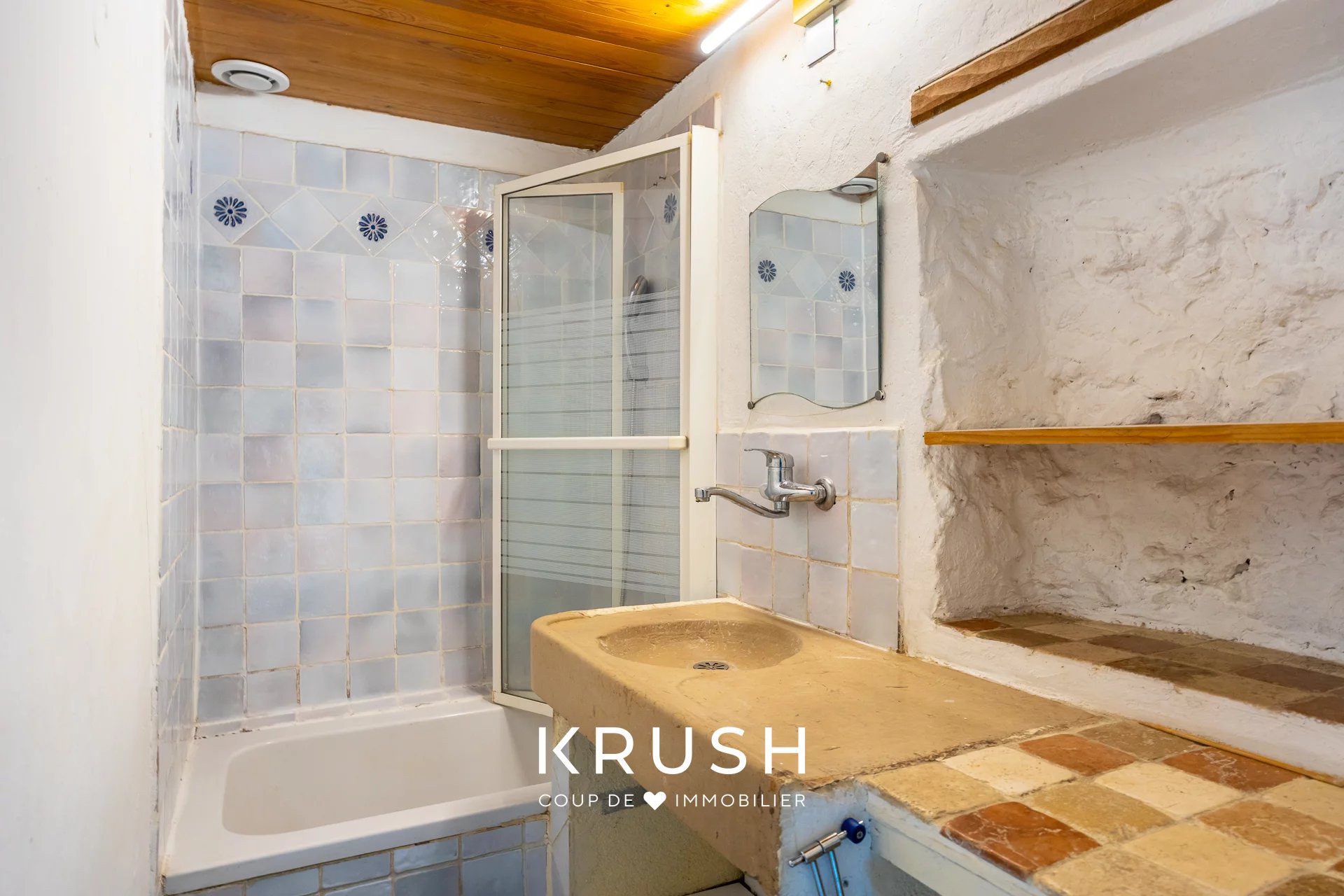 – une salle de bain avec une pile en pierre de Cassis réinventée en lavabo (craft local 10/10),