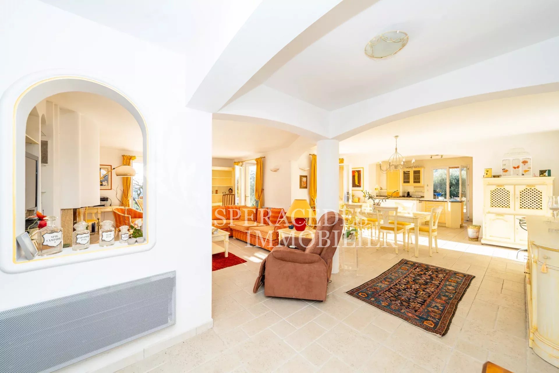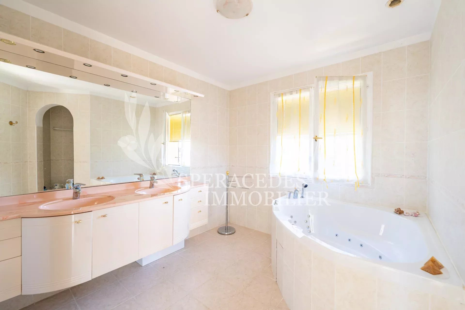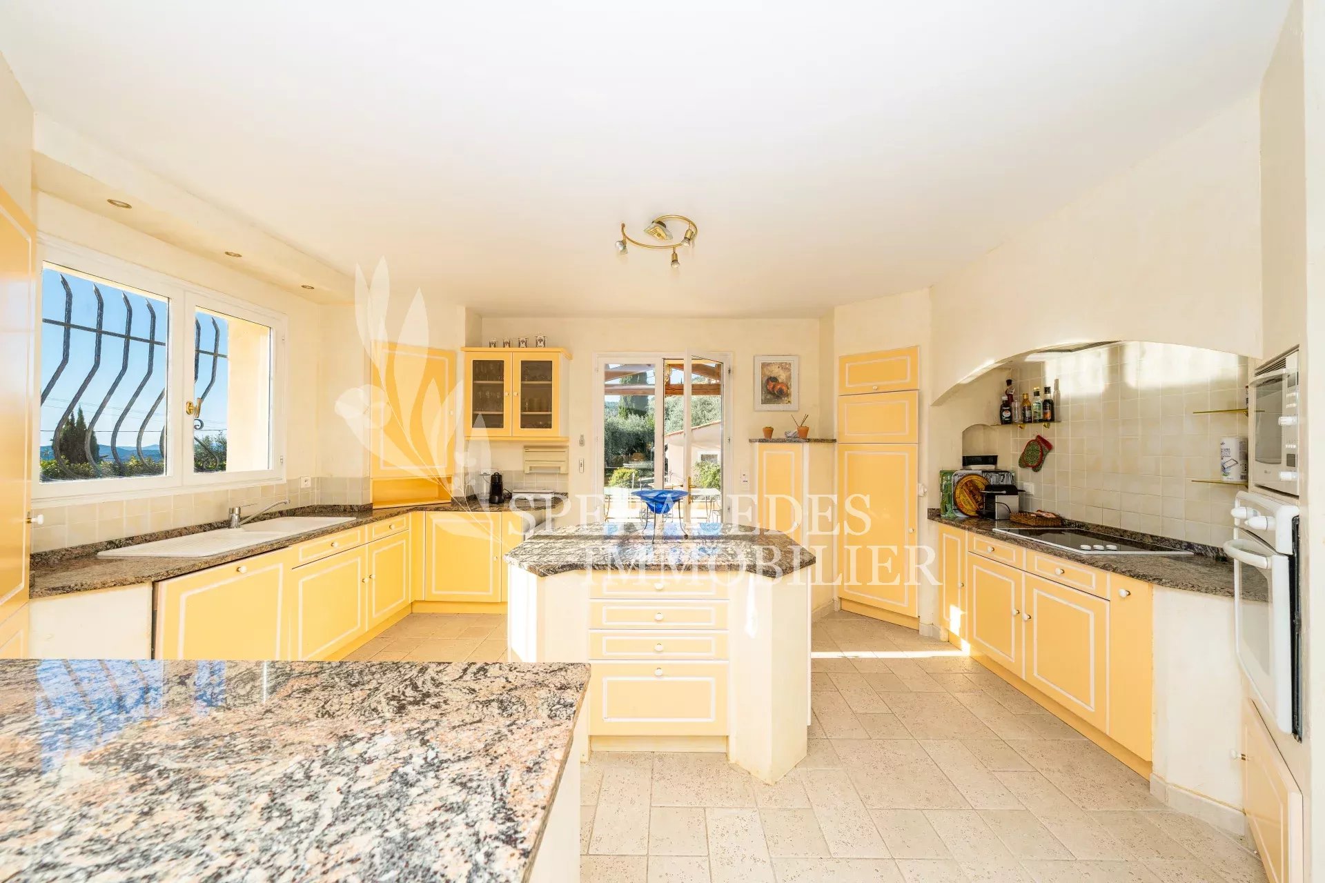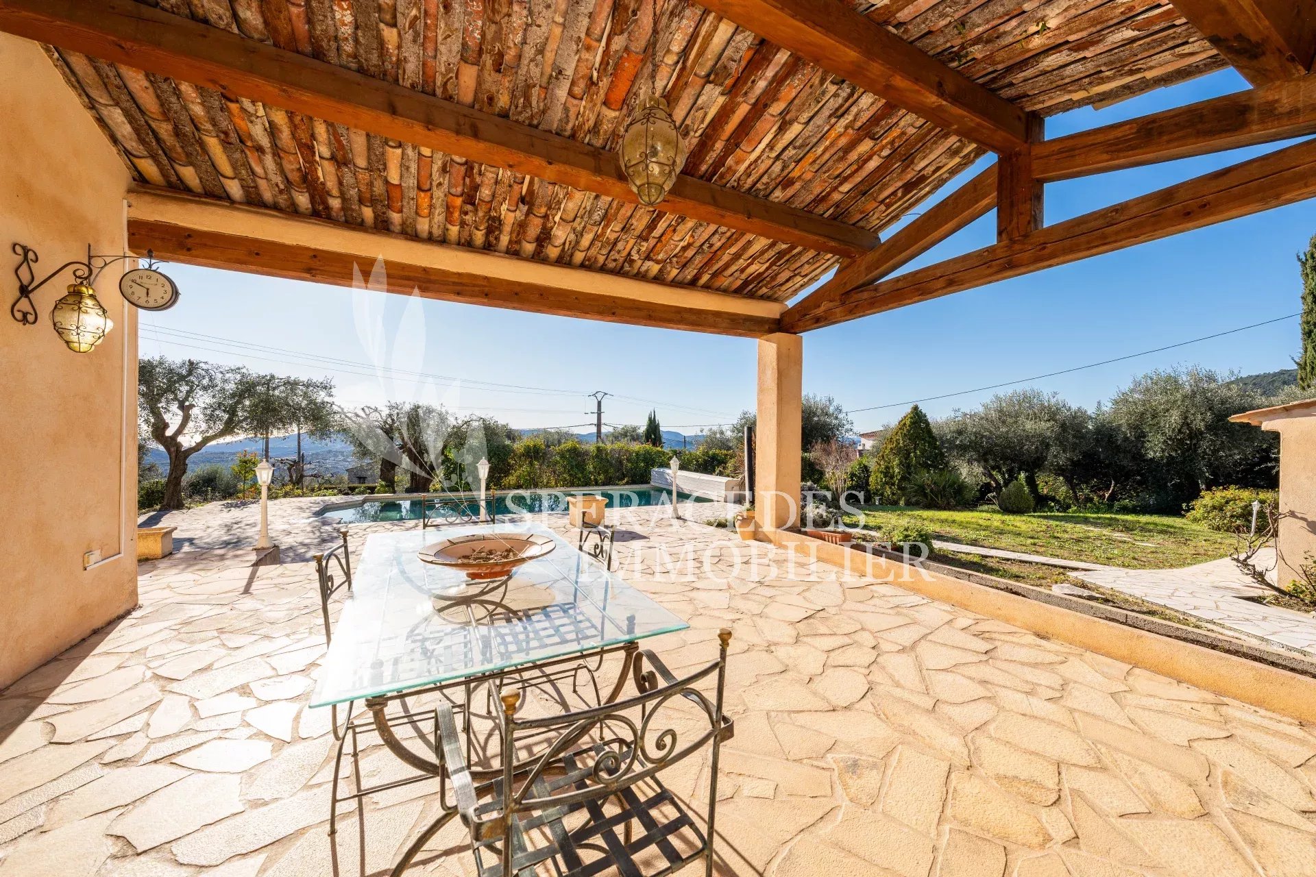 Exclusivité. Cabris, dans un quartier résidentiel calme et recherché, à quelques pas du pittoresque village de Spéracèdes, découvrez cette belle villa traditionnelle d’environ 170 m², offrant une belle vue sur la mer et le lac. Le terrain de 3 210 m², agrémenté de superbes oliviers et de végétation méditerranéenne, crée une atmosphère paisible et accueillante. De plain-pied, la villa se compose d’un grand salon/salle à manger lumineux avec une cuisine ouverte d’environ 78 m², un espace convivial et spacieux. Vous y trouverez également une chambre avec salle d’eau, deux autres chambres et une salle d’eau supplémentaire. Deux grandes terrasses couvertes permettent de profiter du cadre extérieur, idéalement orientées pour profiter de la vue. À l’étage, la chambre principale dispose d’une salle de bains avec douche et d’un dressing, avec accès à une terrasse tropézienne, parfait pour se détendre au soleil. La villa dispose aussi d’une belle piscine de 10 x 5 m avec rideau électrique, d’un garage et d’un abri pour voitures