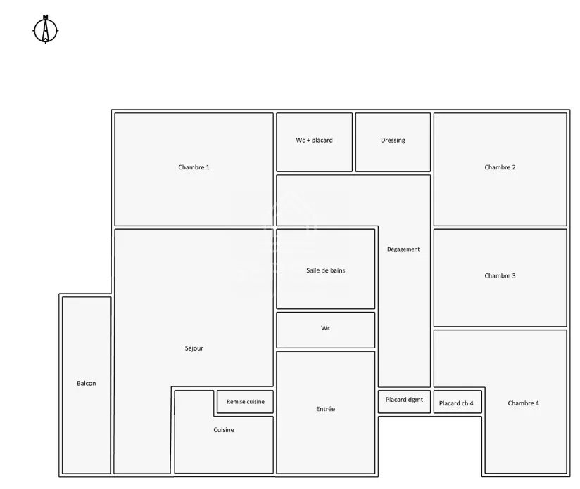 Il se compose d’un vaste séjour, de quatre chambres, d’une cuisine indépendante, et d’une salle de bain.
