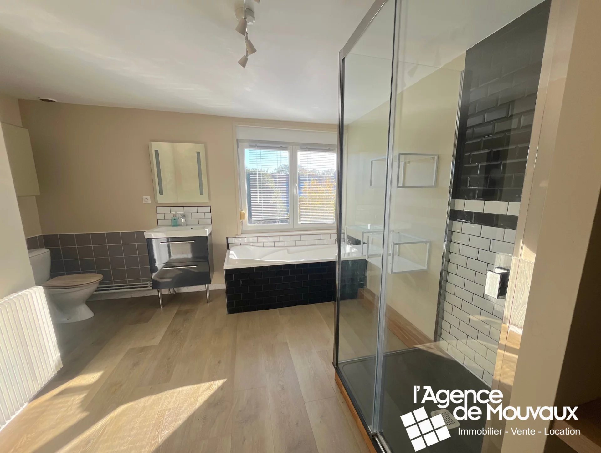 Le palier du premier étage dessert deux chambres dont une très spacieuse avec dressing, une salle de bains avec douche et baignoire, des rangements et un deuxième WC.