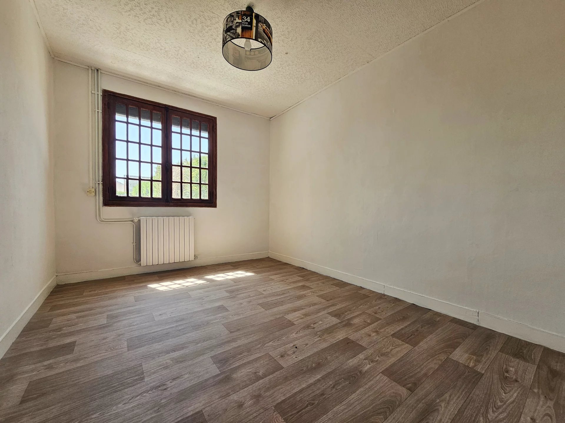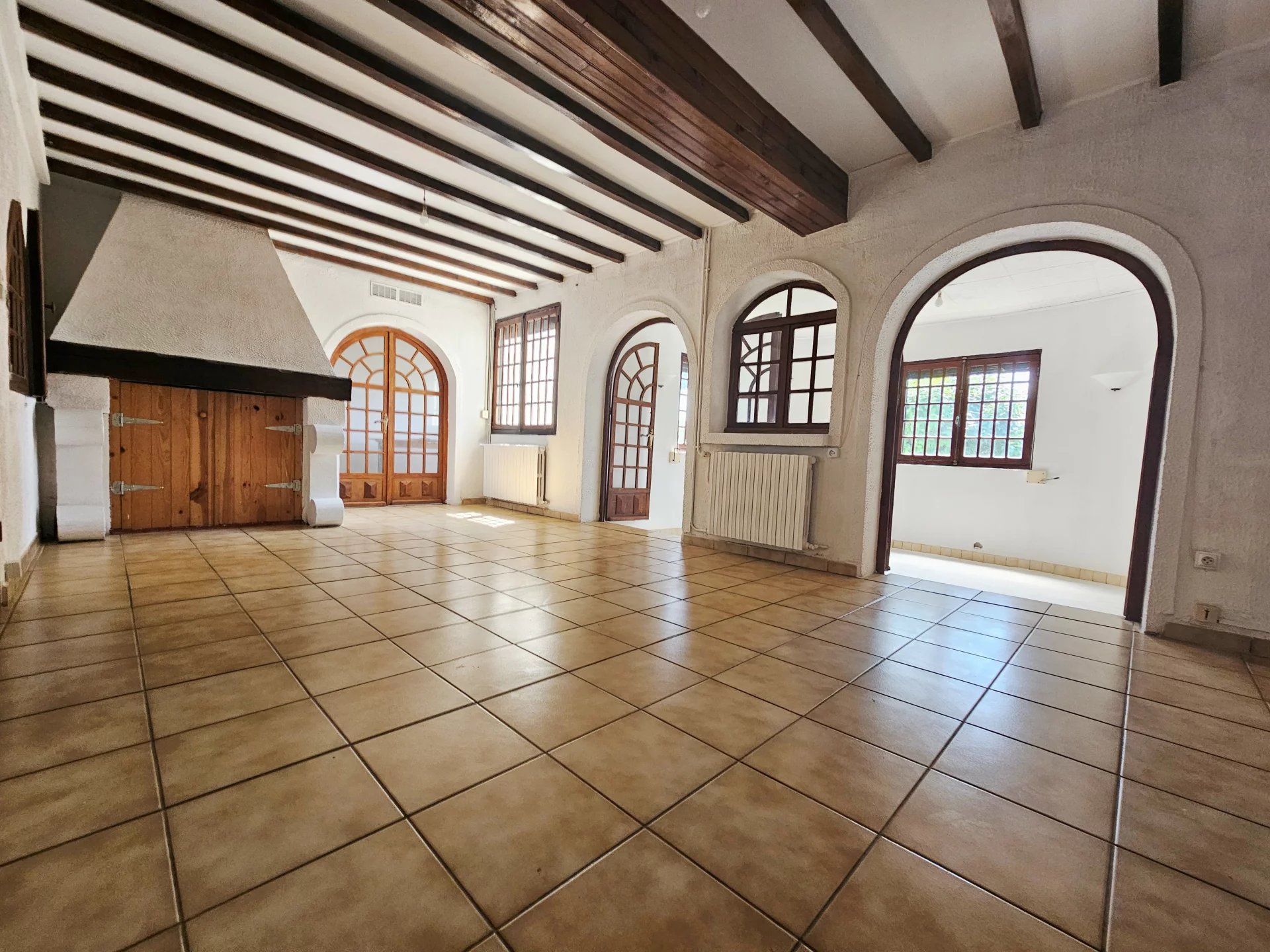 Pas de temps à perdre pour venir découvrir ce pavillon de plain pied offrant : entrée/couloir, cuisine avec passe plats, spacieuse pièce de vie avec conduit de fumées, bureau ou chambre complémentaire, 2 chambres, wc, salle d’eau refaite récemment.