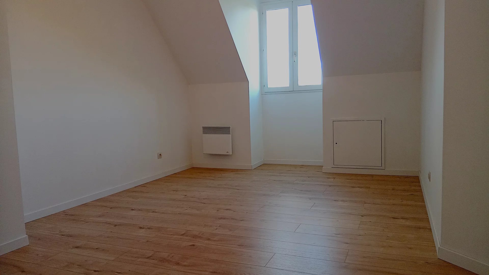 Commençons par le rez de chaussée : Entrée, cuisine ouverte sur sa lumineuse pièce de vie qui donne directement accès à la terrasse, il est également possible d’y installer un poêle à granulés ou à bois pour renforcer le confort, chambre, salle de bains et un WC indépendant. À l’étage, deux chambres supplémentaires.
