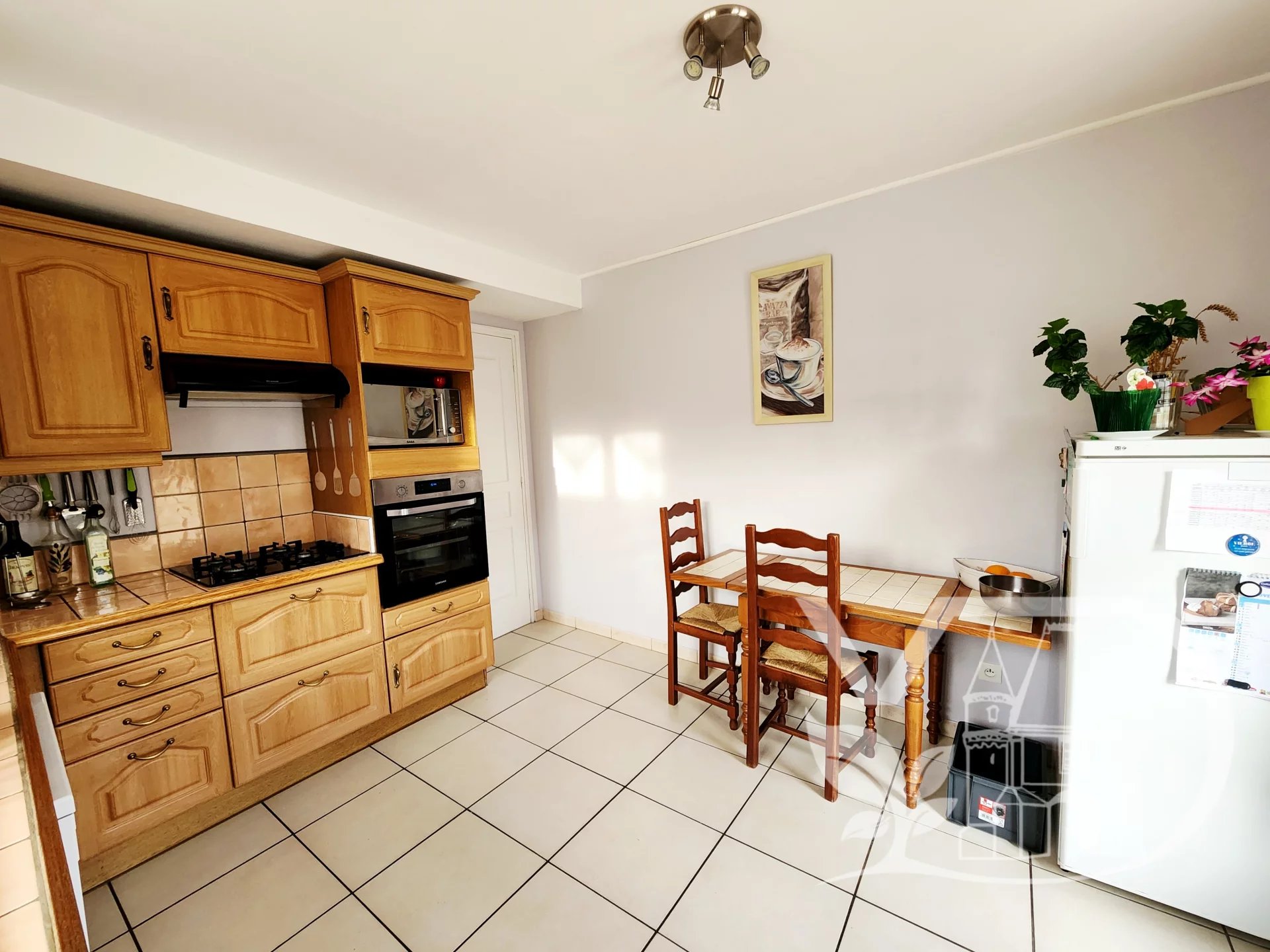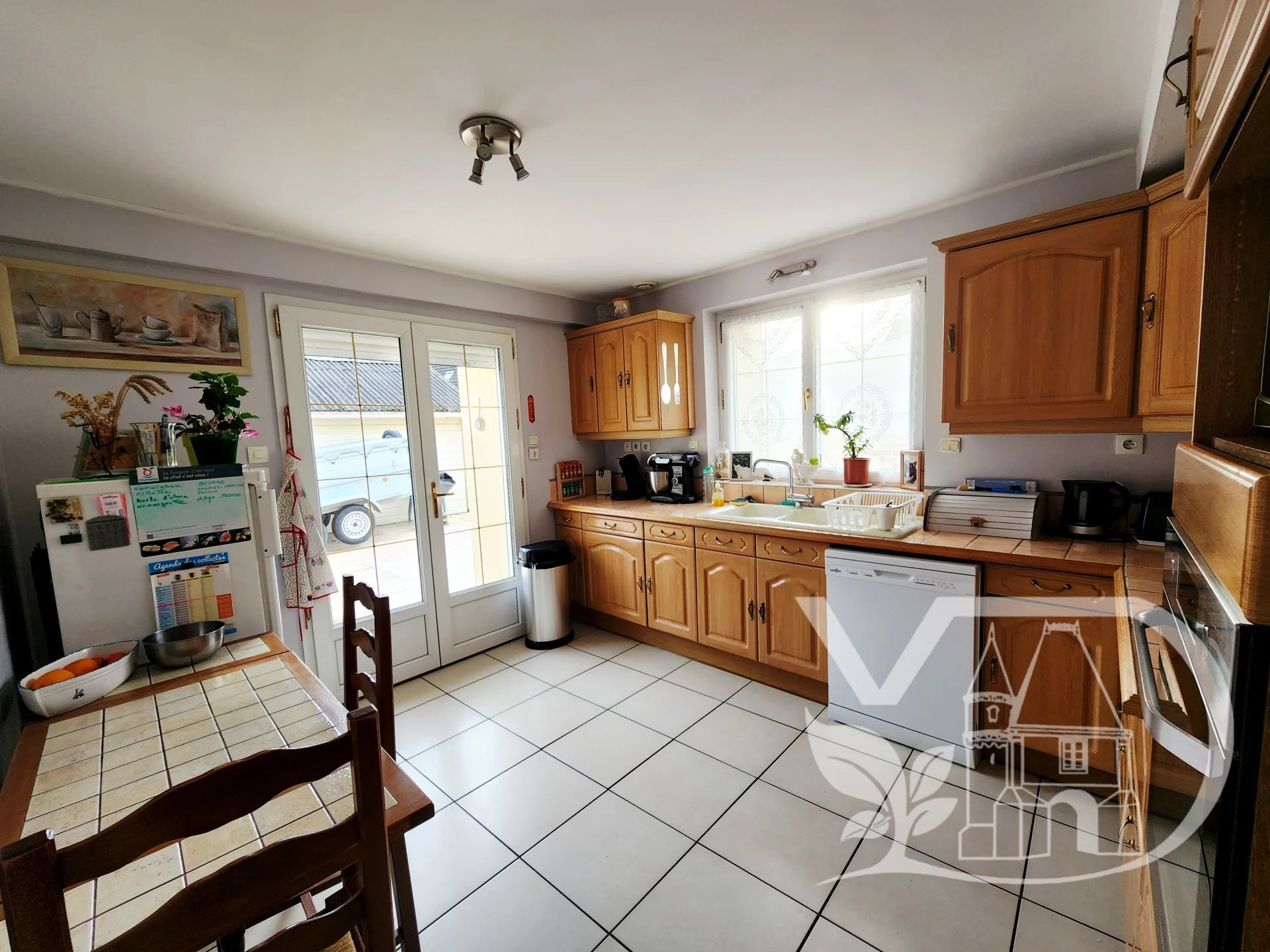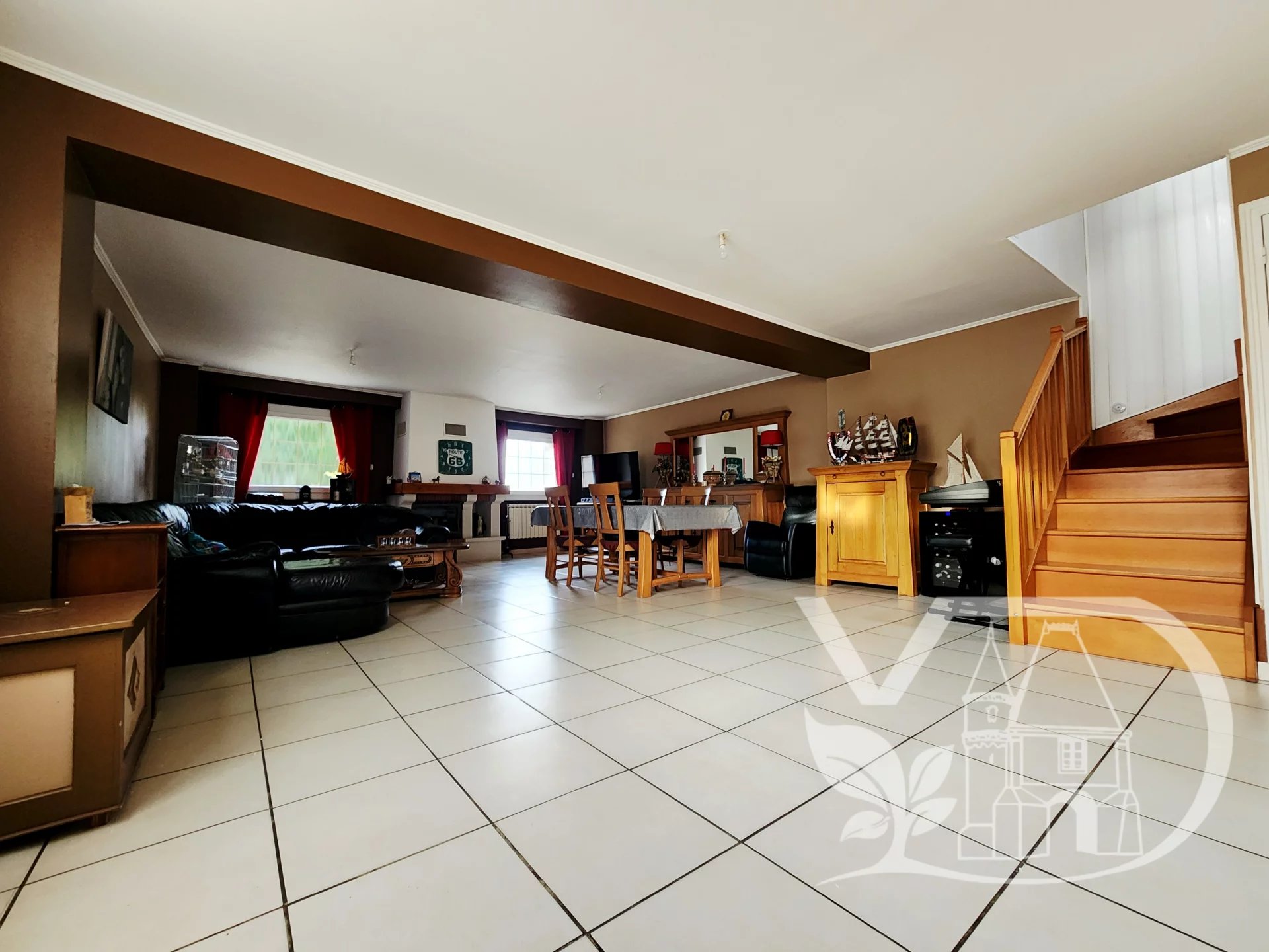 Elle offre une entrée ouverte sur un vaste séjour avec cheminée insert, une cuisine aménagée et semi-équipée lumineuse avec accès terrasse, ainsi qu’un bureau et des WC. À l’étage, un palier distribue 4 chambres confortables et une salle d’eau.