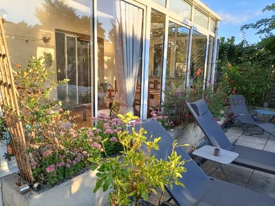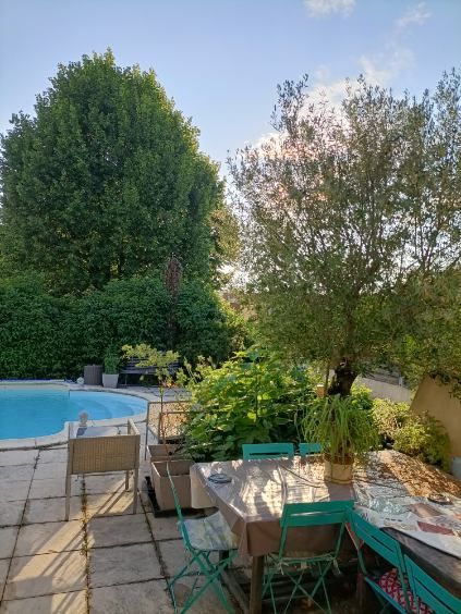 A l'extérieur vous découvrirez un charmant terrain entièrement clos et arboré avec deux terrasses, une grande piscine de 8*4 et un jardin.