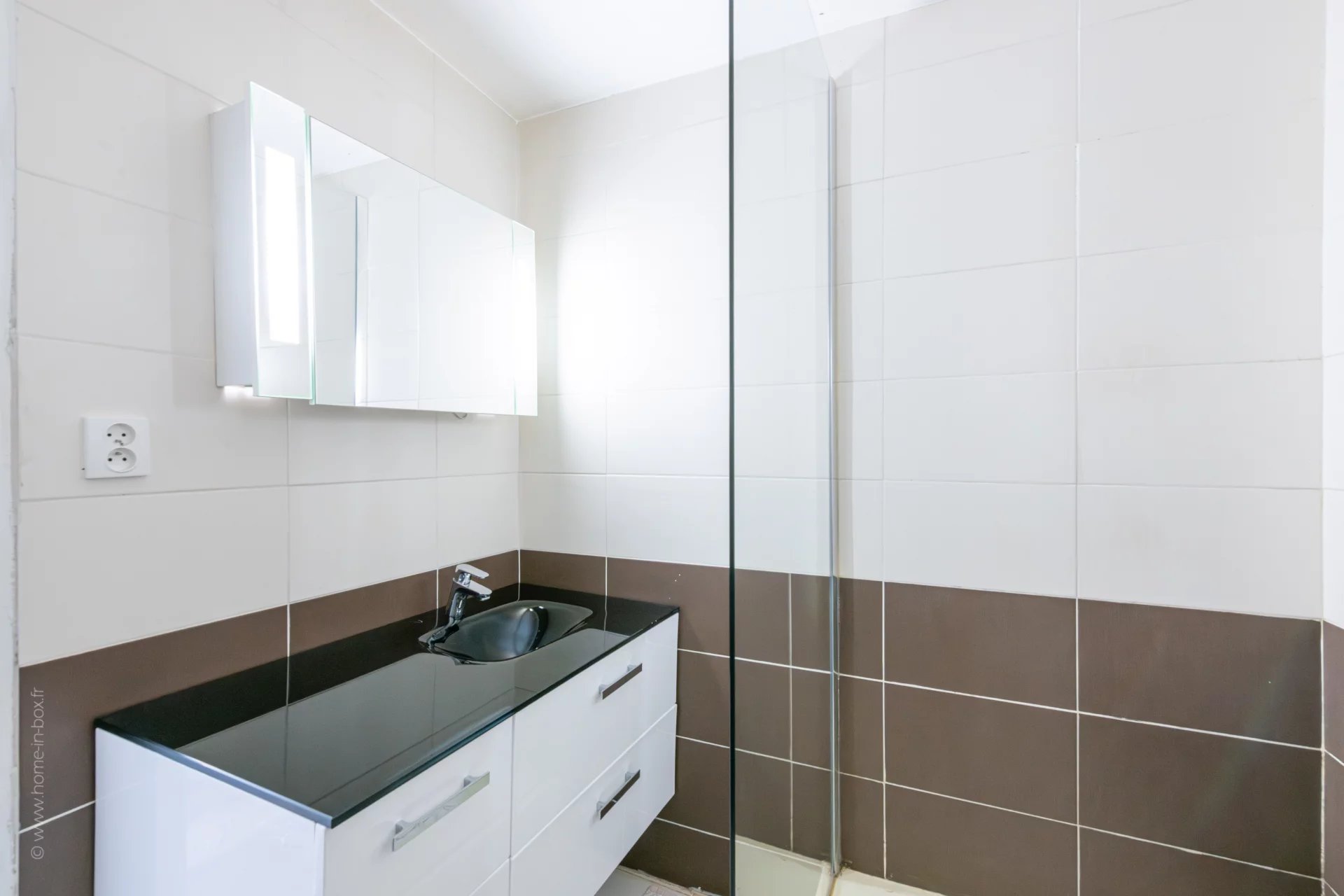 Cet appartement se compose comme tel : une entrée, un double séjour, une cuisine aménagée et équipée, une grande chambre parentale donnant sur cours, au calme, et une salle de bain.
