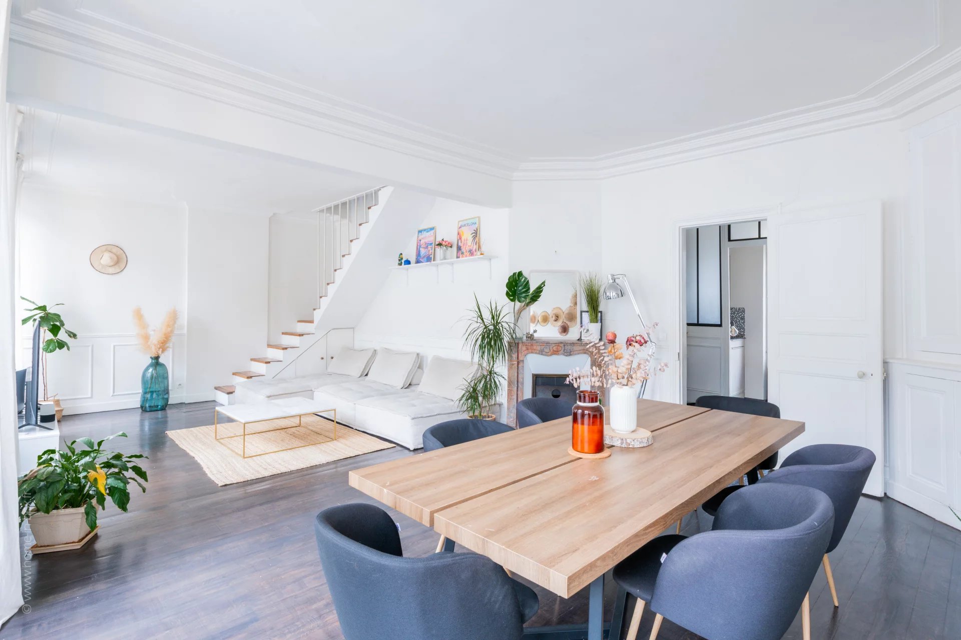 En plein centre ville de Longjumeau, dans un quartier commerçant et proche de toutes commodités, au premier étage d'un immeuble datant 1800, se situe un superbe appartement lumineux de 5 pièces : 4 chambres et un double séjour.