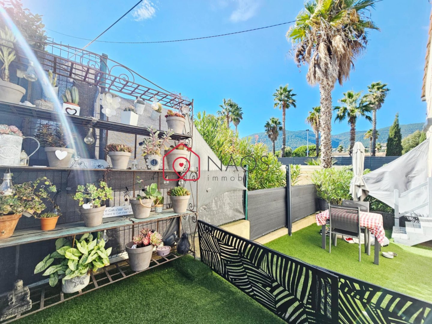 A proximité immédiate des plages et du centre ville, cette maison de ville sur un étage, entièrement renovée avec goût et climatisée, séduira les amateurs confort et de modernité. Elle offre une surface d'environ 90m² habitables (72m² loi carrez) Au rez-de-jardin, un salon séjour lumineux avec sa cuisine ouverte, aménagée et équipée. Une chambre parentale avec sa salle d'eau, une buanderie ainsi qu'un WX indépendant complétent ce niveau. L'étage propose un spacieux pallier pouvant être aménagé en bureau, dressing ou salle de jeux pour enfants. Il dessert deux chambres confortables et climatisées, une salle de bains et un second WC indépendant. A l'extèrieur un jardin clos et arboré d'environ 130m², organisé en plusieurs espaces de détente, vous permettra de profiter pleinement. Un espace stockage de 28m² vient parfaire ce bien rare et recherché. Taxe foncière: 866€ Information et visites : Virginie CHARBONNIER - 06 10 83 48 86 - Ville du greffe : AGENT COMMERCIAL EI RSAC FREJUS 848 985 701 La présente annonce immobilière a été rédigée sous l'entière responsabilité de Virginie CHARBONNIER, mandataire indépendant pour NAOS immobilier Réf. 23713 Prix moyens des énergies indexés sur les années 2021 2022 2023 (abonnement compris). Montant estimé des dépenses annuelles d'énergie pour un usage standard : entre 660 € et 950 € par an. Honoraires : 15 000 € TTC (3,16 %) inclus charge acquéreur (474 000 € hors honoraires) Les informations sur les risques auxquels ce bien est exposé sont disponibles sur le site Géorisques : www. georisques. gouv. fr