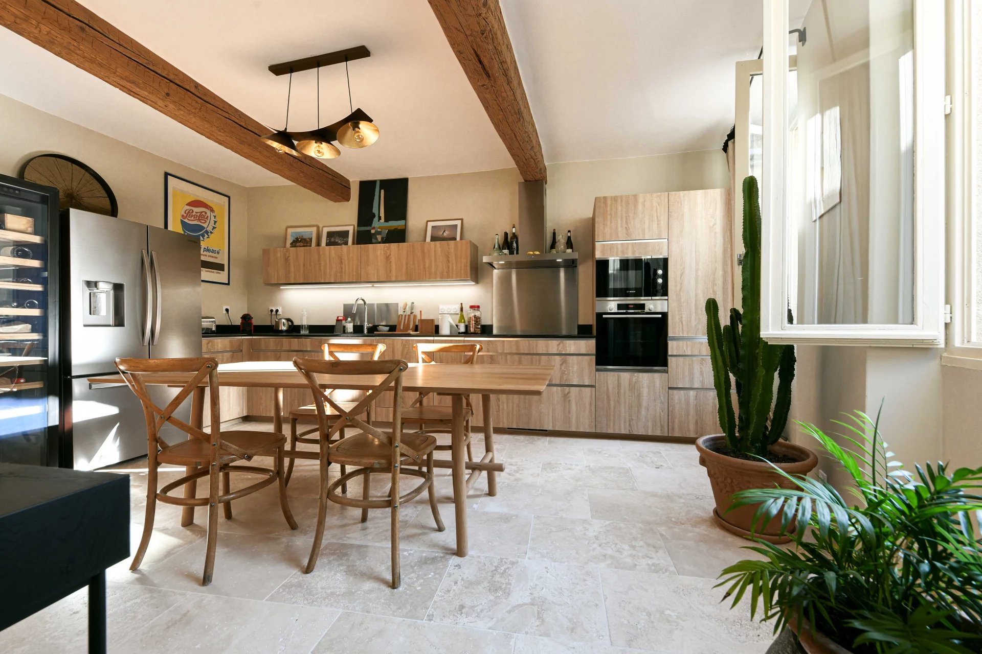 Situé dans une des rues les plus prestigieuses du secteur sauvegardé Restauration de grande qualité, matériaux noble Salon, chambre, bureau Superbe cuisine, caves