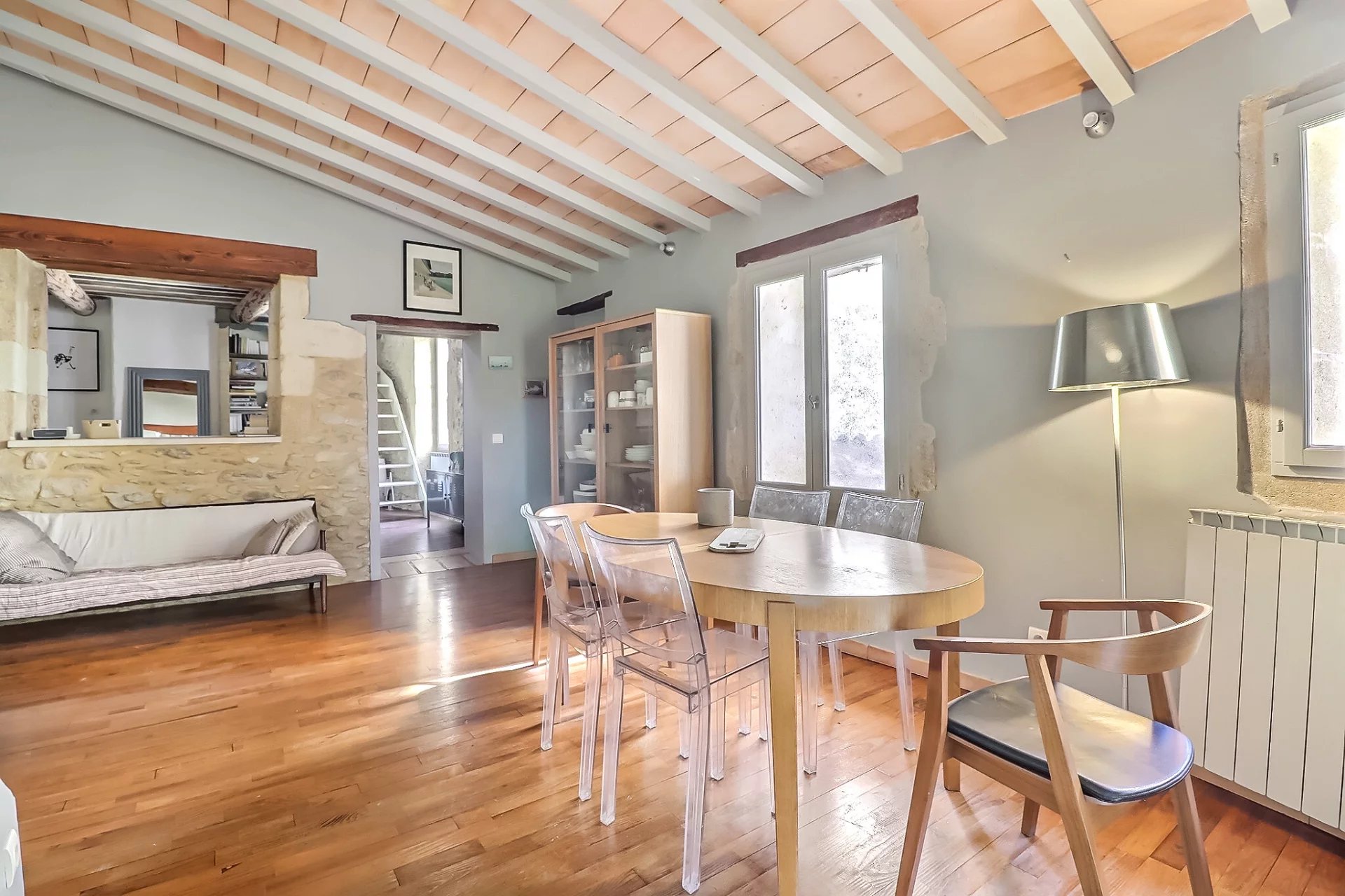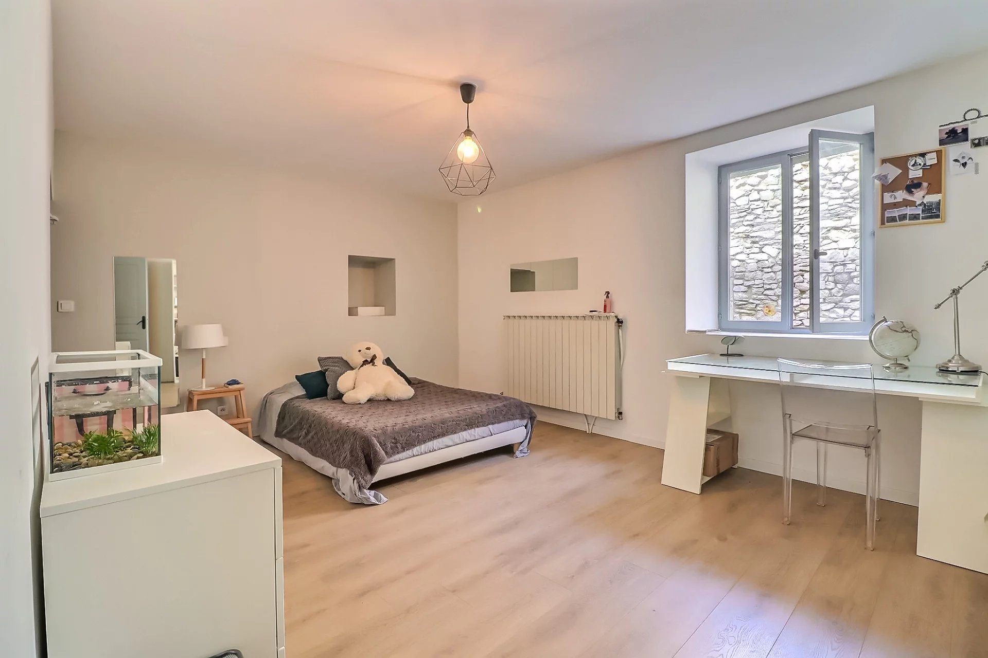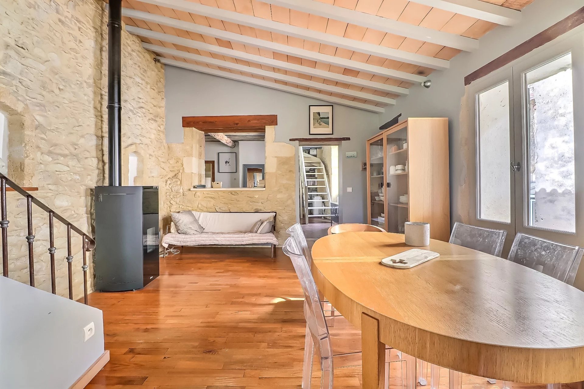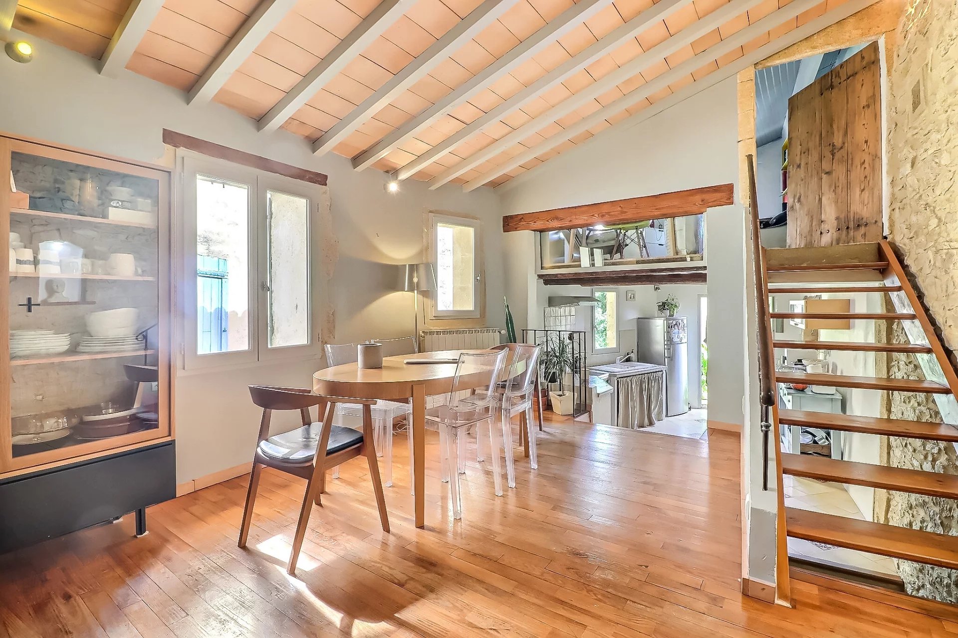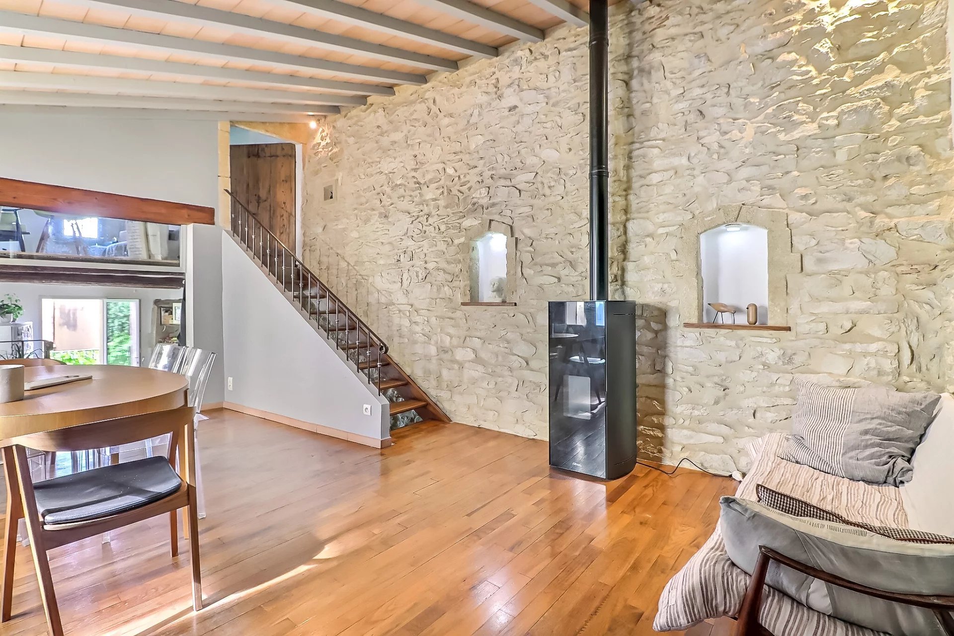 A 20 minutes à l'Est d'Uzès, maison de village en pierre d'environ 167m² située dans un village avec commerces de proximité, 20 minutes d'Avignon, 35 minutes de Nîmes . Cette habitation sur trois niveaux présente au rez-de-chaussée deux chambres pourvues chacune d'une salle d'eau, cabinet de toilette indépendant. Au premier niveau : Bel espace de vie avec poêle à granules et une chambre en suite. Le second étage propose une chambre aménagée en bureau, une pièce en mezzanine et une terrasse d'environ 35m² avec vue imprenable sur le village. Cave, terrain non attenant et non constructible de 600 m² (acquisition facultative). De beaux espaces, une distribution fonctionnelle permettant l'intimité de chacun et un cachet indéniable... Un ravissant pied à terre dans un village authentique! Les informations sur les risques auxquels ce bien est exposé sont disponibles sur le site Géorisques : www.georisques.gouv.fr