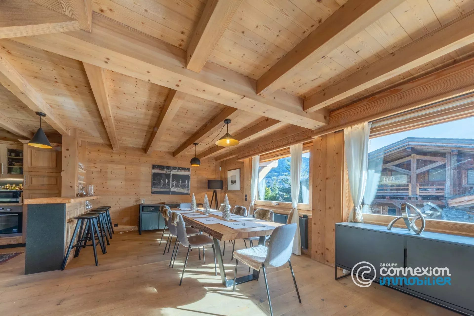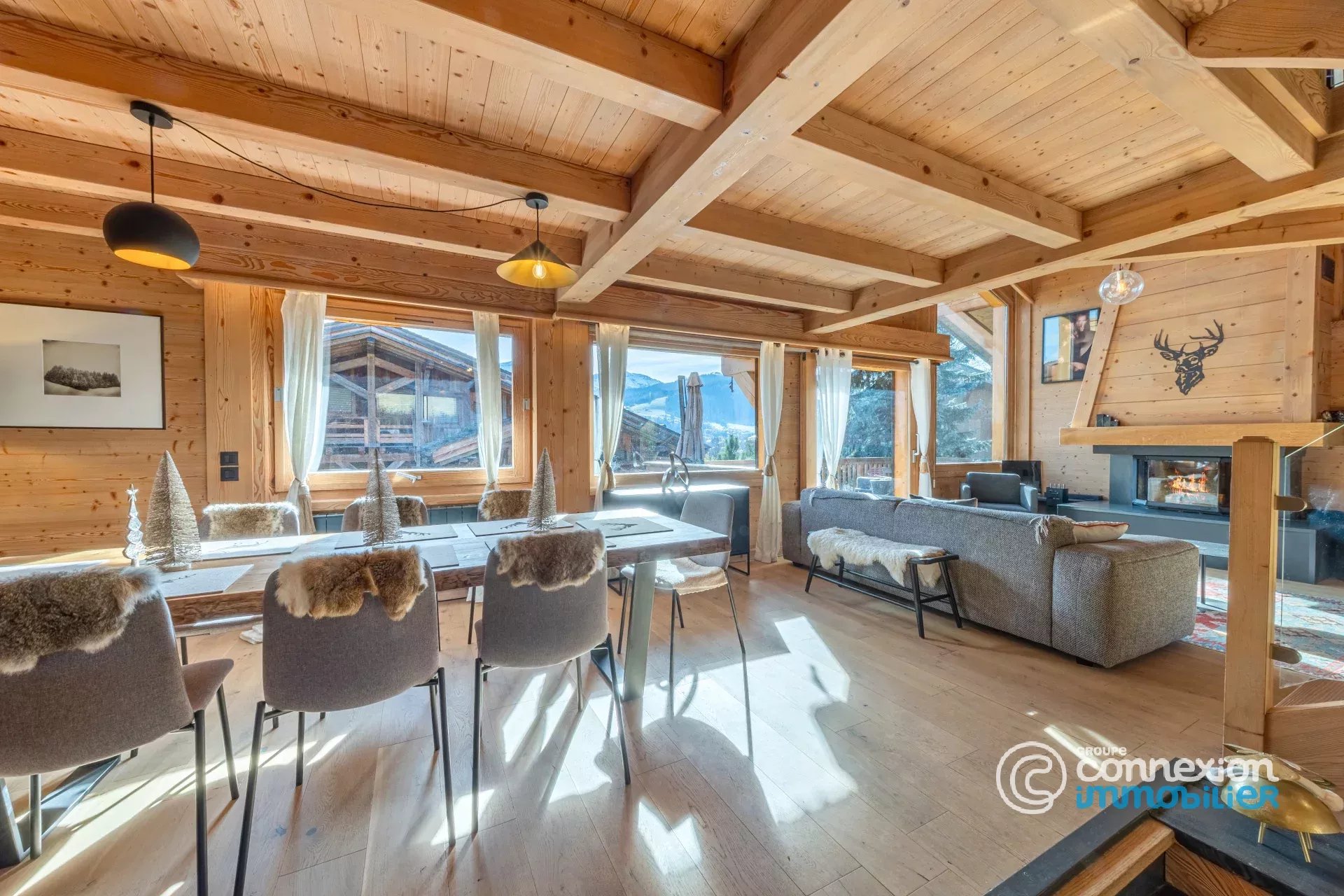 Le chalet se situe sur la commune de Demi-quartier très proche du centre du village de Megève. Ce charmant chalet, baigné de lumière grâce à ses volumes généreux et à sa hauteur sous plafond, offre un cadre de vie à la fois confortable et raffiné. Au rez-de-chaussée, il comprend deux chambres avec salle de bains, ainsi qu’un espace bien-être comprenant une salle de massage/sauna, une salle de sport et une salle de cinéma. À l’étage, la cuisine s’ouvre sur la salle à manger et le salon, où une cheminée crée une atmosphère chaleureuse et conviviale. Un toilette visiteurs complète ce niveau. Le premier étage accueille trois chambres : deux partagent une salle de bains avec baignoire, tandis que la troisième dispose de sa propre salle de bains en suite. L’ensemble s’ouvre sur une grande terrasse plein sud et sur un jardin exposé sud-ouest, parfait pour profiter pleinement des après-midis ensoleillés et des douces soirées. Ce chalet séduit par sa vue dégagée sur Megève, sa proximité des pistes et son esprit chaleureux mêlant confort et prestations haut de gamme.