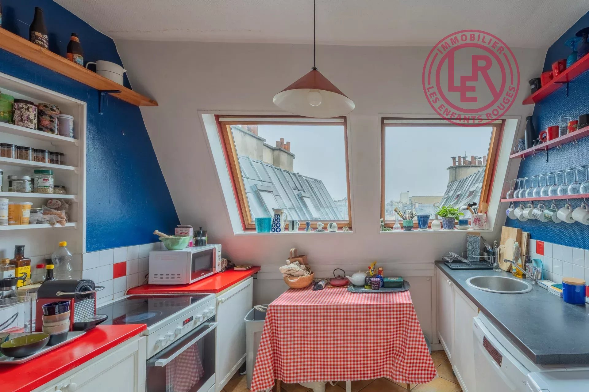 Dans un bel immeuble haussmannien agrémenté d'une charmante cour végétalisée, l'Agence des Enfants Rouges vous propose de découvrir cet appartement traversant Est/Ouest sur rue et cour de 96m2 Carrez et 129.81m2 au sol. Situé au 6ème et dernier étage sans ascenseur, il vous séduira par ses beaux volumes et les vues dégagées qu'il offre.