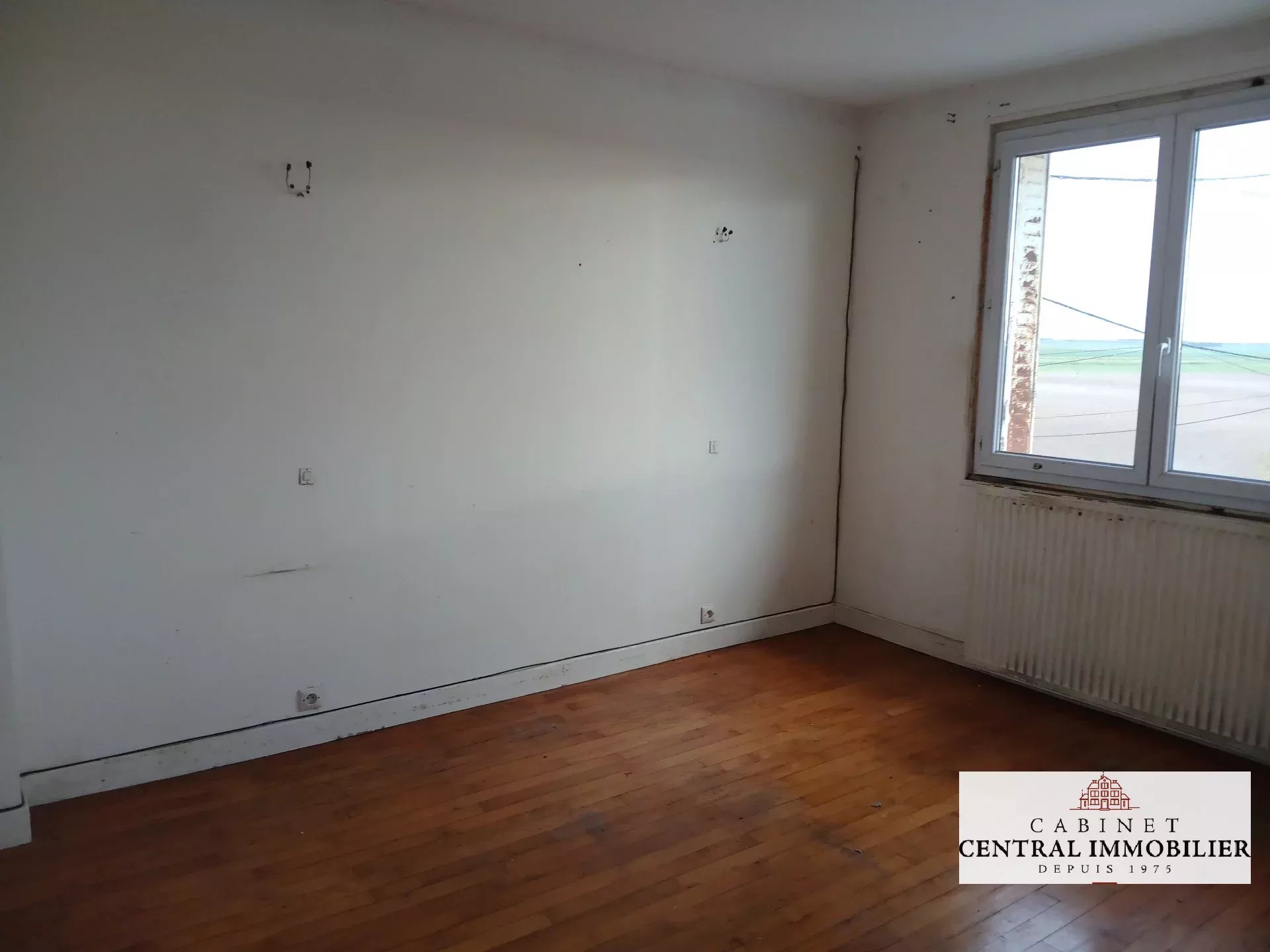 Maison comprenant : entrée sur couloir de 5.20m² avec cagibi, cuisine de 11m² avec placard, séjour salon de 18.70m² parqueté, salle d'eau de 3.50m², wc. À l'étage : palier de 3.40m² parqueté, 3 chambres de 8.50m²/11.50m² et 11.60m² parquetées, bureau de 6.40m² parqueté, wc avec lave mains. Sous sol sous l'ensemble compartimenté en garage, cellier avec point d'eau et atelier. Chauffage central gaz de ville. Double vitrage. Isolation par l'extérieur. Garage indépendant. Terrain clos de 305m².