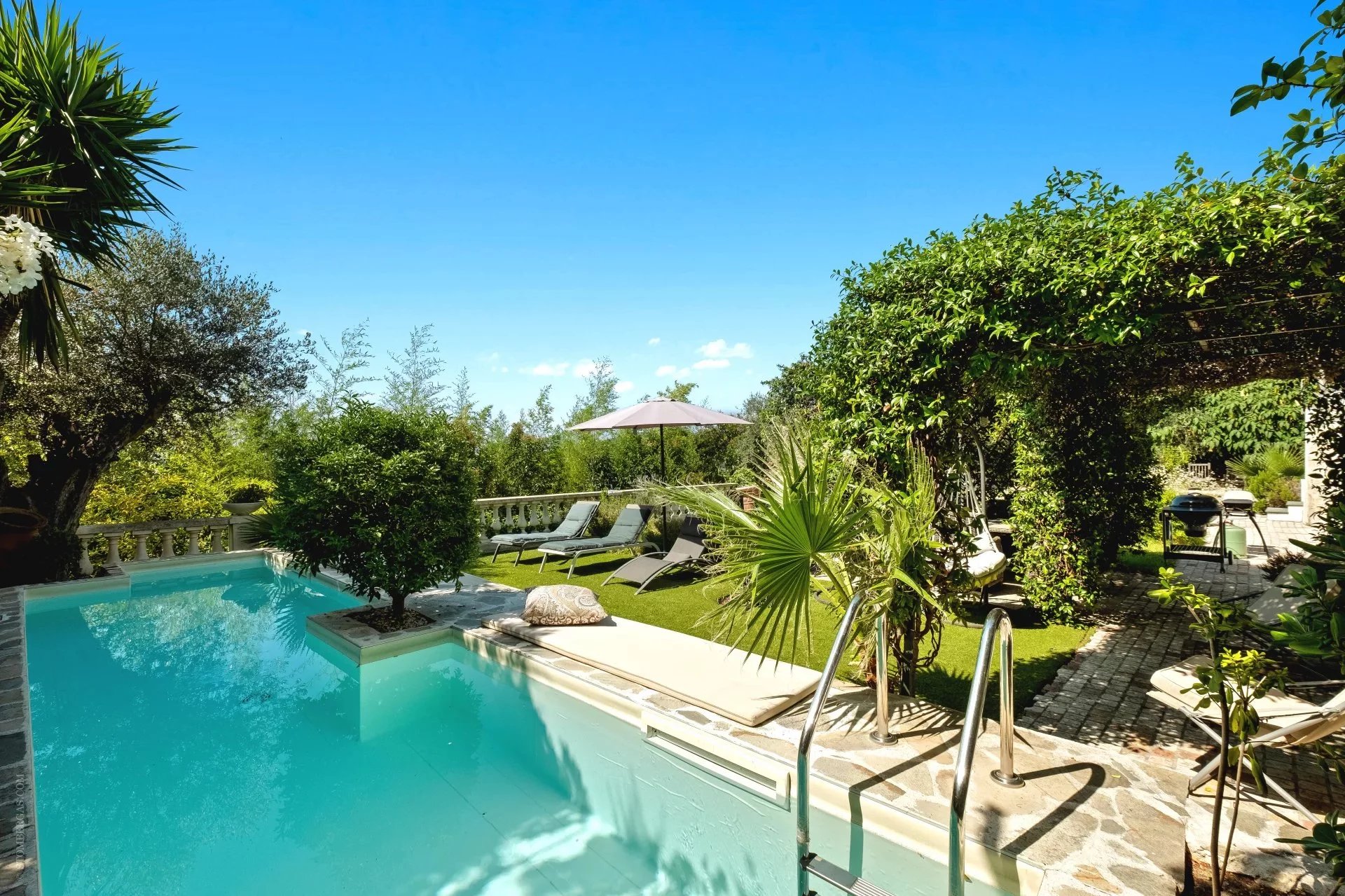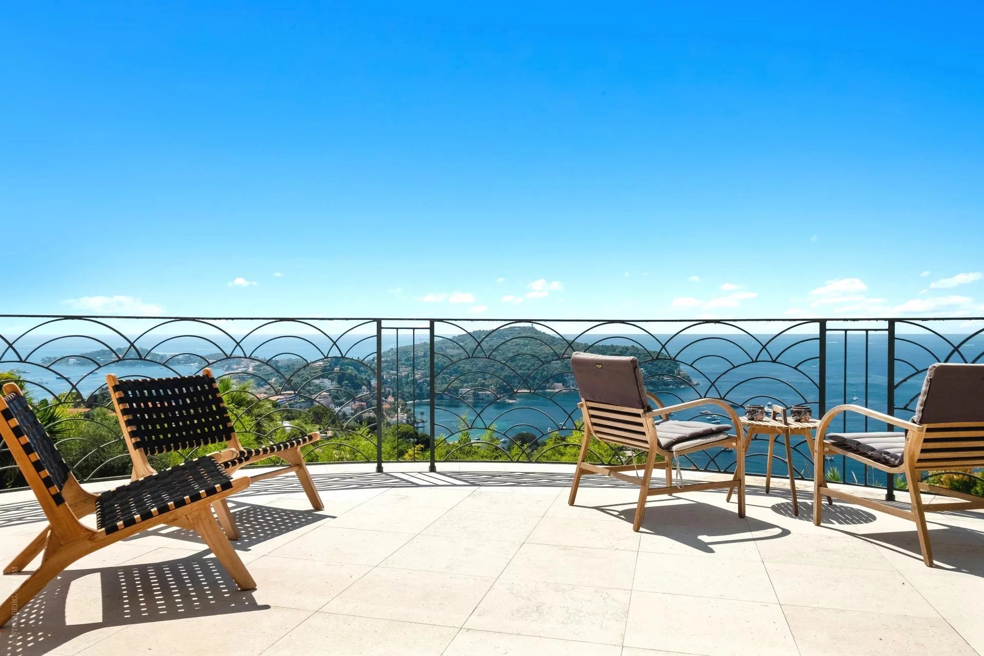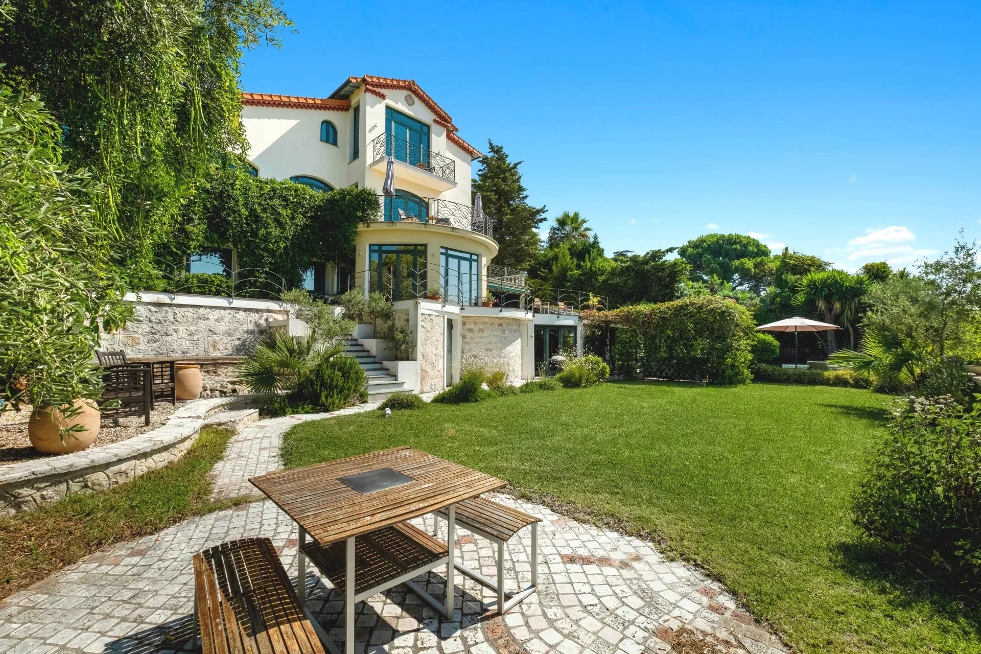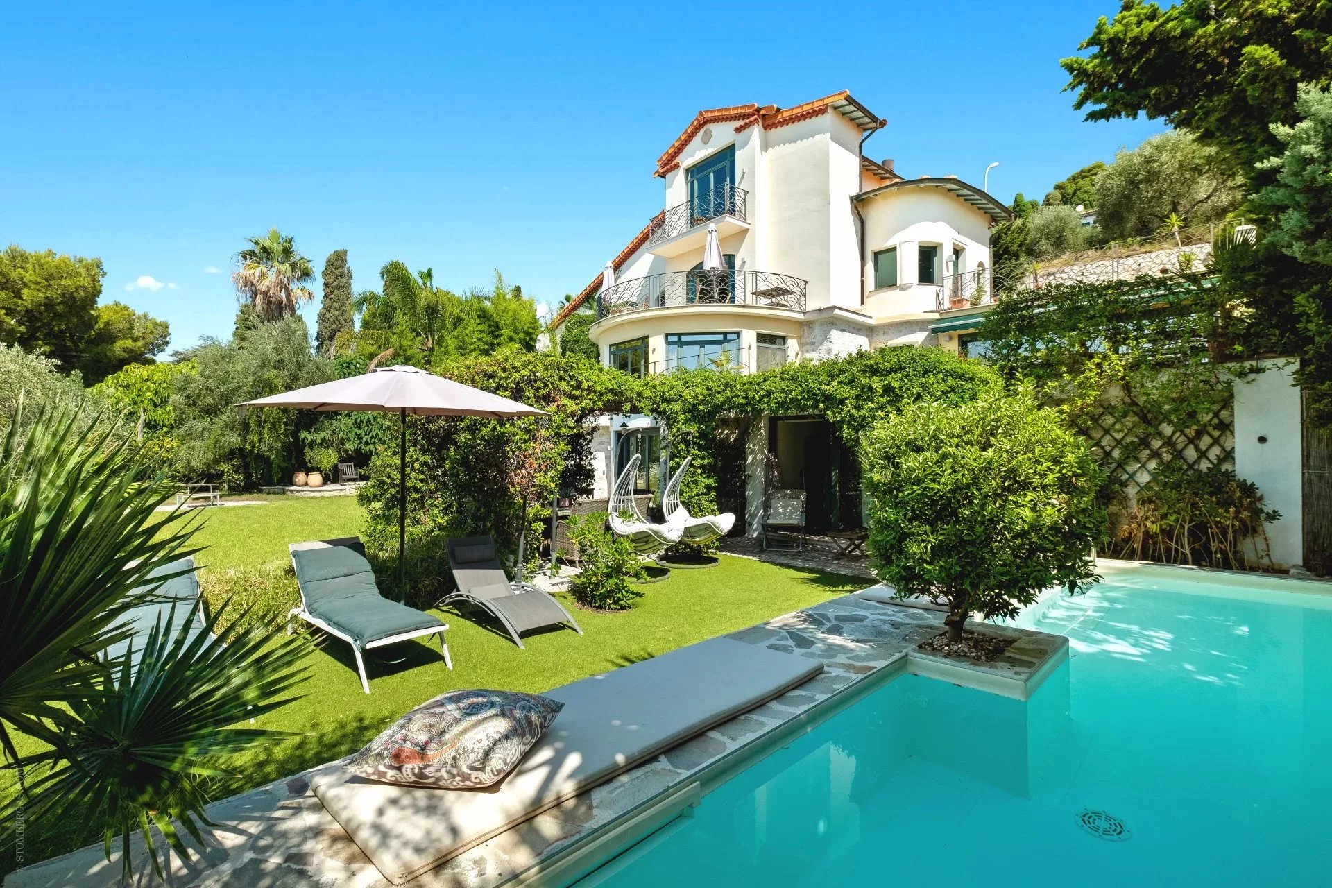 Cette magnifique villa historique, construite en 1930 et entièrement rénovée en 2017, bénéficie d’une exposition sud et offre une vue panoramique imprenable sur la baie de Saint-Jean-Cap-Ferrat. S’étendant sur environ 450 m² sur quatre niveaux desservis par un ascenseur, la propriété repose sur un terrain de 1 000 m² et propose de superbes espaces extérieurs : vastes terrasses, piscine, jardin plat de 500 m² et solarium pour profiter pleinement du soleil méditerranéen. Le rez-de-chaussée offre un espace de vie convivial et élégant comprenant une cuisine moderne, un séjour lumineux, un bar, une salle de bains, une salle de fitness et un sauna. L’ascenseur assure un accès facile à tous les étages. La villa dispose de quatre suites de maître, d’un salon, d’une buanderie et d’une chambre pour le personnel. Elle est complétée par un garage et deux places de parking couvertes, offrant un confort total dans un cadre d’exception. Cette propriété allie charme historique, rénovations contemporaines et panorama unique, offrant un style de vie raffiné au cœur de la Côte d’Azur.