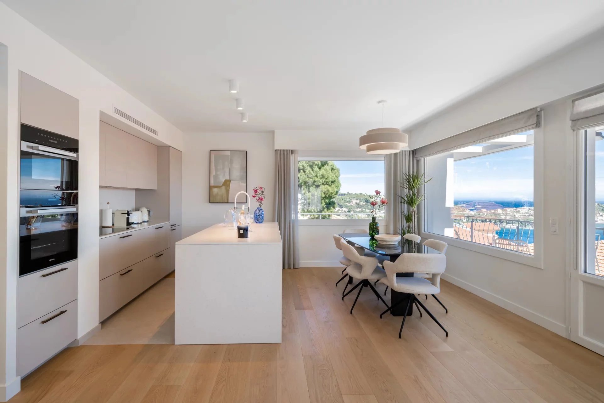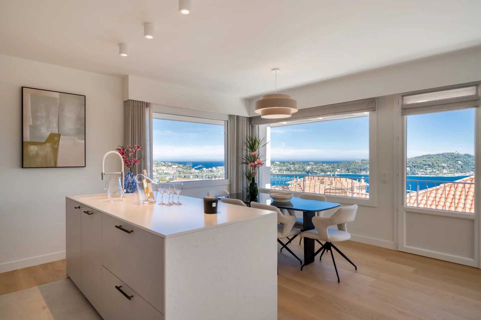 Idéalement situé dans une résidence intimiste et au calme absolu, ce somptueux appartement entièrement rénové avec des prestations haut de gamme offre une vue imprenable sur la mer et le Cap Ferrat. D’une surface de près de 100 m², il se compose d’une entrée privative, d’un vaste séjour baigné de lumière avec cuisine ouverte entièrement équipée, de trois élégantes chambres en suite, de deux salles d’eau contemporaines avec WC, ainsi que d’un WC invités. La superbe terrasse d’angle prolonge les espaces de vie et invite à la détente face à un panorama exceptionnel. Un permis de déclaration préalable a été validé pour l’aménagement d’un toit-terrasse de 100 m², offrant un potentiel unique pour créer un espace extérieur privatif avec vue à 360°. Le stationnement est facile devant la résidence. Situé à quelques pas des commerces et à proximité immédiate des plages, cet appartement rare à la vente bénéficie d’un emplacement privilégié dans l’un des secteurs les plus prisés de la Côte d’Azur. Villefranche-sur-Mer séduit par son authenticité, son charme méditerranéen et sa qualité de vie incomparable.
