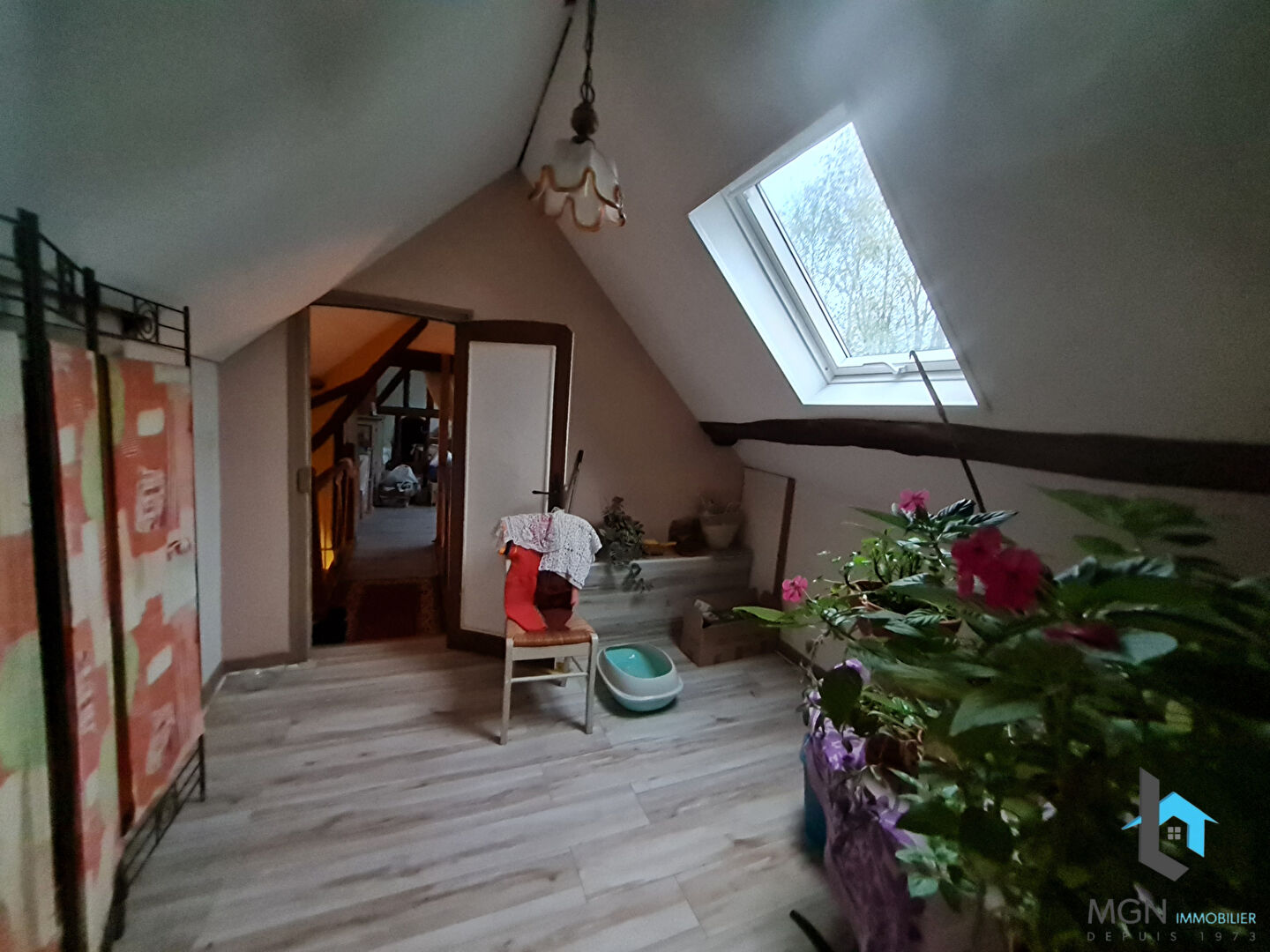 MGN immobilier vous propose longère de 115m² nichée dans un lieu dit entre Illiers Combray et Courville sur eure, 10 minutes d'un échangeur d'autoroute A11 sortie 3.1 et 1h20 de Paris. Longère avec une grange de 75m² sur terrain arboré de 1109 m² comprenant : Entrée sur salon séjour avec cheminée insert et poêle à bois, cuisine aménagée avec four à pain, chambre, salle d'eau, WC et cellier. Etage : palier desservant 2 chambres et bureau en enfilade. Grange de 75m² au sol et petite dépendance. Fenêtres double vitrage (5.00 % honoraires TTC à la charge de l'acquéreur.)