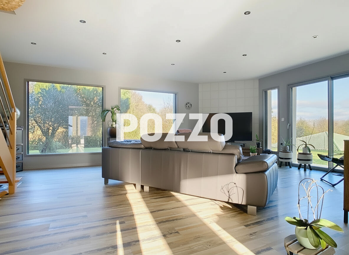 RARE A LA VENTE ! Avec ses 250m² et ses 6 chambres, cette maison édifiée en 2005 aura de quoi vous surprendre par ses volumes ! Elle bénéficie d'une pièce de vie de 56m² avec cuisine ouverte entièrement équipée et d'un salon en extension, très lumineux grâce à ses nombreuses ouvertures sur le jardin. Une chambre et une salle d'eau au rez-de-chaussée offre une vie de plain-pied. A l'étage : 4 chambres dont une de 34m² environ, une salle de bains avec douche et baignoire et un beau dégagement en mezzanine permettant un espace bureau. FONCTIONNELLE, cette maison dispose d'une arrière cuisine / buanderie attenante à la cuisine et donnant accès à un double garage de 48m². La maison disposant d'un sous-sol, vous trouverez 150 m² pour créer l'espace de votre choix (jeux - cave à vin - bar) Le JARDIN d'environ 4 300m² est clos (portail électrique), et offre un bâtiment à usage de garages ou d'atelier.