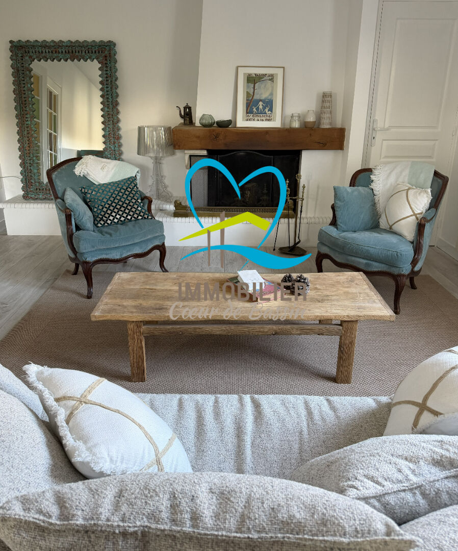 Exclusivité, A Taussat les Bains, à 5 minutes à pied de la plage et du port de plaisance, Immobilier Coeur de Bassin vous invite à découvrir cette villa spacieuse entièrement rénovée élevée d'un étage, comprenant au rez de chaussée un hall d'entrée ouvrant sur un séjour lumineux avec cheminée, une cuisine aménagée et équipée indépendante avec cellier attenant, 2 grandes chambres de 16m2 chacune, une salle d'eau, une buanderie et un WC indépendant. A l'étage, 1 bureau, 2 grandes chambres de 15 m2 avec, chacune, sa salle d'eau et toilettes, un dressing et une salle de jeux. Cette maison est implantée sur une belle parcelle de 1200m2 arborée et paysager (PC pour une piscine autorisé) . Vous trouverez également 2 grands garages, une terrasse couverte, un abri bois. Cette villa confortable accueillera votre famille et vos amis toute l'année ou pour de belles vacances au bord du Bassin dans un cadre naturel et résidentiel recherché. Bien rare sur ce secteur, pour davantage d'informations ou une visite contacter Chrystel au 06.17.30.39.60, agent commercial inscrit au RSAC de Bordeaux 840 160 451. (3.55 % honoraires TTC à la charge de l'acquéreur.) Chrystel DADOLE (EI) Agent Commercial - Numéro RSAC : 840160451 - BORDEAUX.