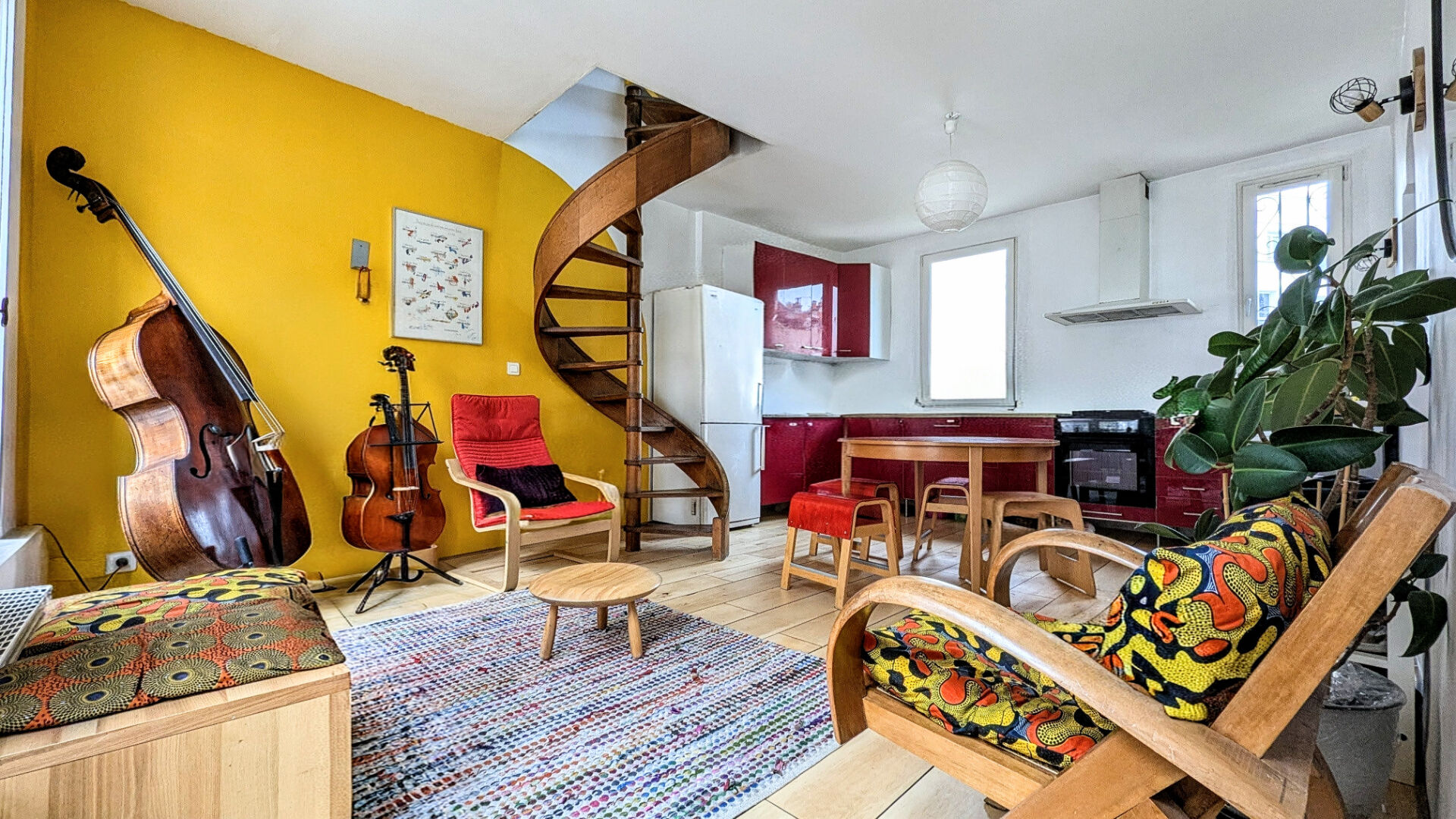 COUP DE COEUR! Porte de Paris - Légion d'honneur. Centre-ville, à 3 minutes de la station de métro ligne 13 Porte de Paris, 8 minutes de la station de métro ligne 13 Basilique. Dans une petite rue très calme du centre-ville historique dans un petit immeuble ancien au deuxième et dernier étage, un bel appartement atypique en duplex et traversant de quatre pièces principales comprenant au premier niveau une entrée, séjour avec cuisine ouverte, deux chambres, salle de bains avec WC ; Au d