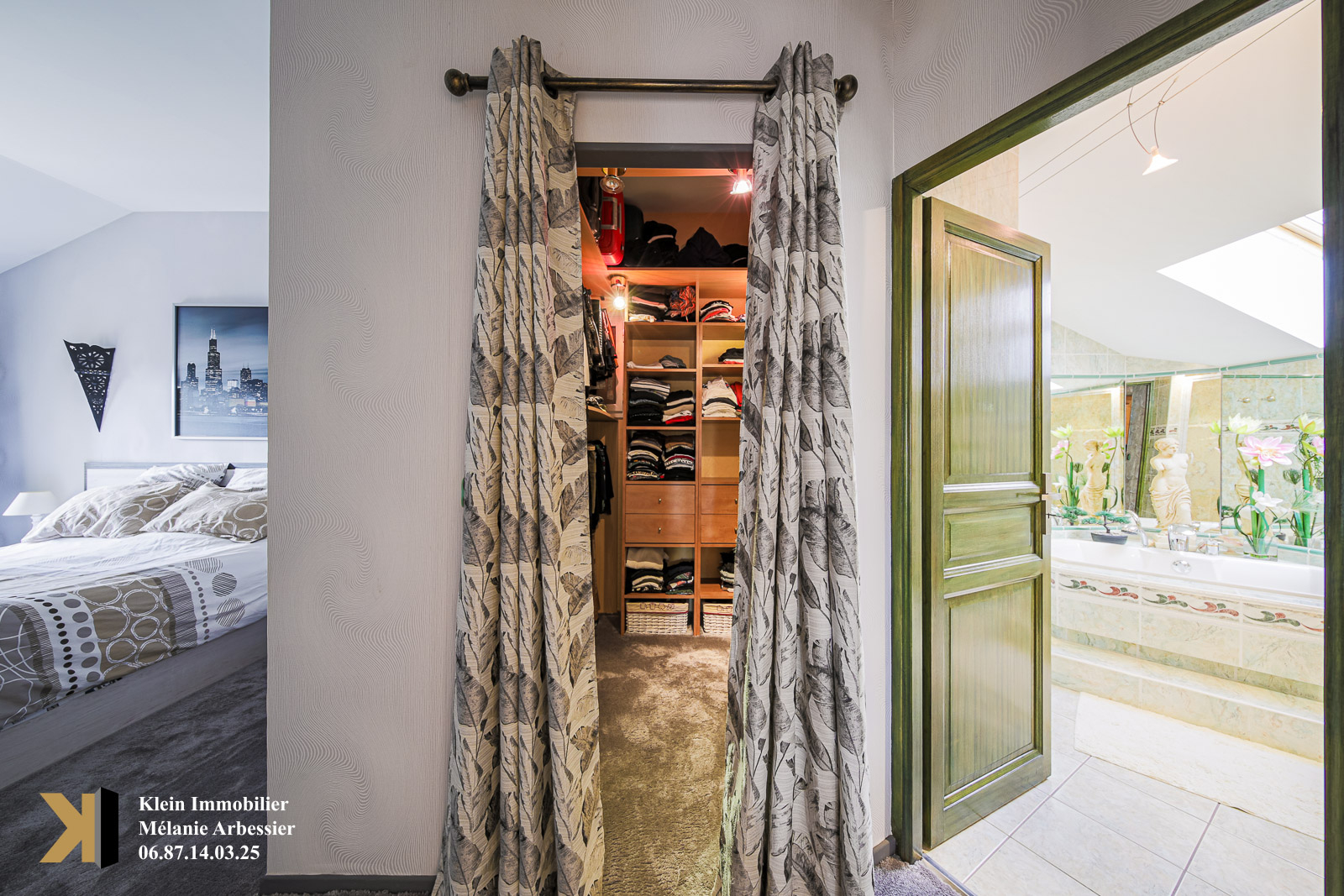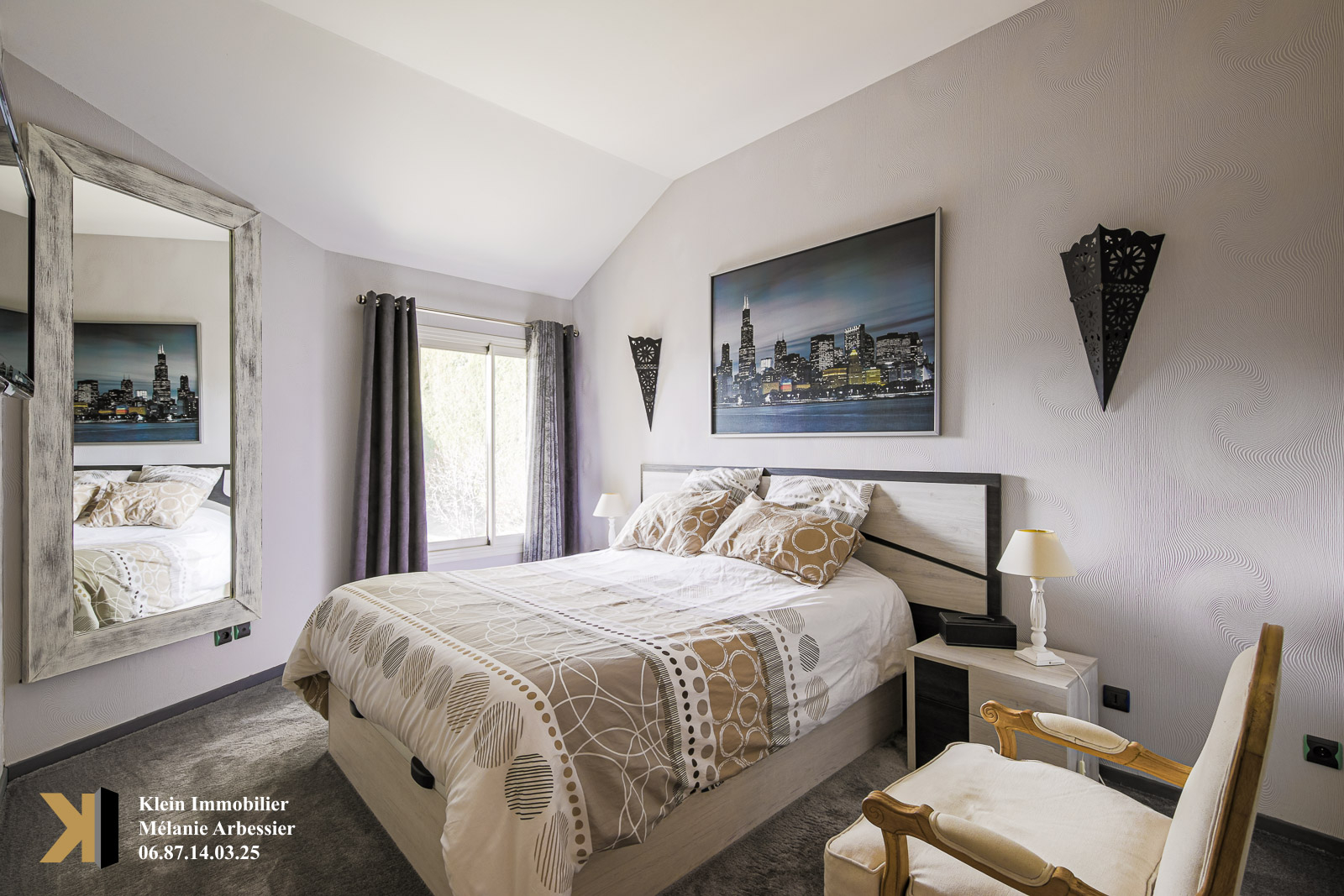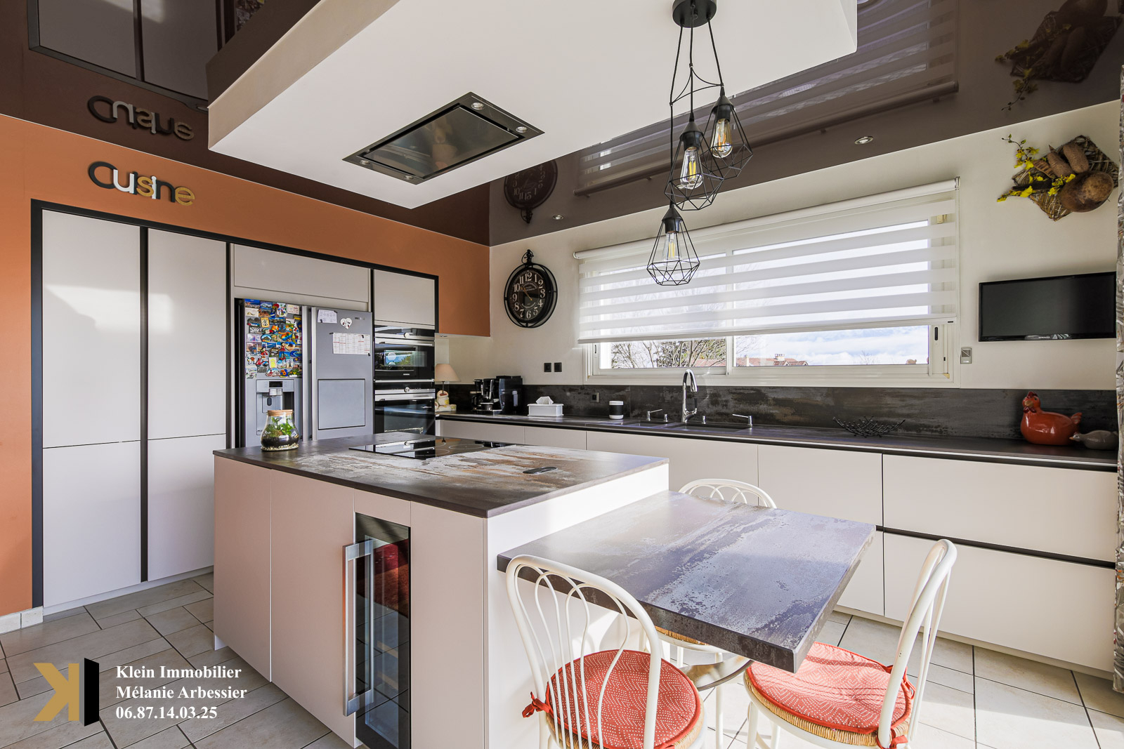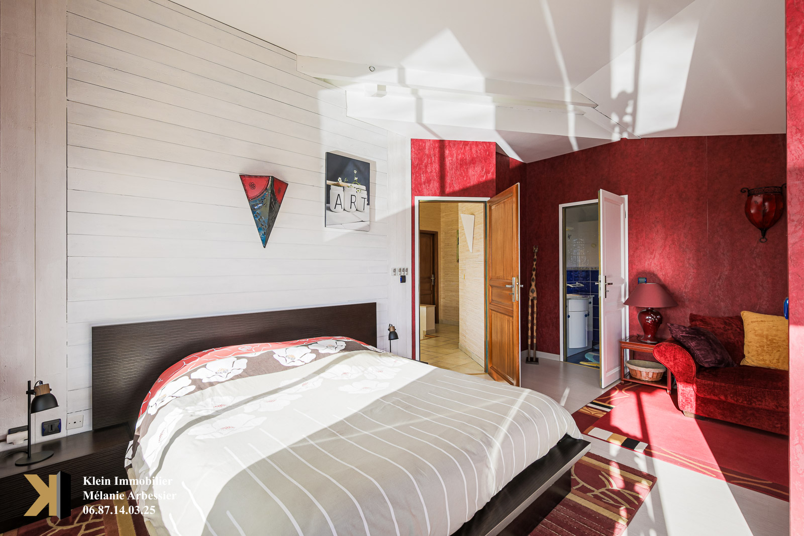 MAISON D'ARCHITECTE D'EXCEPTION A CLAIX Le cabinet Klein vous propose cette superbe maison d'architecte construite en 1999, située sur les hauteurs de Claix, dans un environnement paisible en pleine nature. Cette propriété unique offre une vue sur les montagnes environnantes, tout en étant idéalement placée à seulement cinq minutes du village et de toutes les commodités. D'une surface habitable de 168 m², cette maison lumineuse et spacieuse se compose de cinq pièces. Le coeur de la maison est un vaste séjour doté d'un plafond cathédrale impressionnant de 7,30 mètres de hauteur et d'une superbe cheminée qui apportent une sensation d'espace et d'élégance. Les grandes baies vitrées inondent la pièce de lumière naturelle tout en offrant une vue dégagée sur l'extérieur. La cuisine, récemment rénovée et équipée par Mobalpa, allie design moderne et fonctionnalité. Les espaces nuit comprennent trois belles chambres, dont deux suites parentales à l'étage, chacune avec leur propre salle de bains. Une troisième salle de bains complète également les installations pour un confort optimal. A l'extérieur, le terrain de 1 101 m² est aménagé pour profiter pleinement de chaque saison. Une piscine avec abri est entourée d'une grande terrasse en résine, idéale pour se détendre ou recevoir vos proches. Un pool house complète cet espace. La maison dispose également d'un garage double de 32,5 m² et de plusieurs places de parking extérieures, permettant de stationner en toute facilité. Cette propriété bénéficie d'équipements de qualité, comme une cheminée à insert rétractable. Les fenêtres sont équipées de double vitrage et de volets roulants électriques, garantissant confort thermique et isolation. Le chauffage est assuré par une chaudière au fioul WEISHAUPT, installée en 2000, et la maison est également équipée de la climatisation pour les chaudes journées d'été. DPE : D Infos toiture : Entretenue et nettoyée en 2023 Planche de rive en aluminium Contactez-moi dès aujourd'hui pour plus d'informations ou pour organiser une visite : Mélanie Arbessier O6 87 14 03 25 m.arbessier@klein-immobilier.com Mélanie ARBESSIER (EI) Agent Commercial - Numéro RSAC : - .