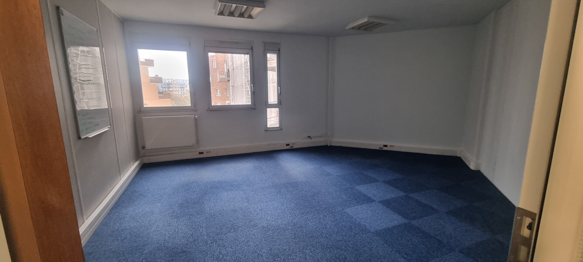 Place du Colonel Fabien, juste en face de la future foret urbaine Immeuble récent au 3ème étage ascenseur 362m2 répartis en 8 bureaux 1 salle de réunion 2 wc, local informatique Bail 3/6/9 Loyer annuel HT HC 135 320 euros + 4800 euros HT HC pour 4 emplacements de parking Charges 28 000 euros HT annuel Dépôt de garantie : 33 830 euros Honoraires transaction : 48 715 euros TTC Rédaction de bail en sus Visites sur rendez vous