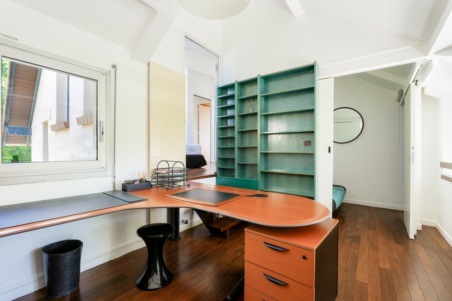 Versailles ? Porchefontaine, Maison d'architecte non mitoyenne offrant de beaux volumes. Au rez-de-chaussée : vaste entrée, séjour lumineux de 38 m² avec cheminée, salle à manger, cuisine indépendante, buanderie et WC. Accès direct à l'extérieur depuis les pièces de vie. A l'étage, répartis sur plusieurs demi-niveaux : trois chambres, une salle de bains, deux salles de douche ainsi qu'un bureau. En sous-sol : laverie, salle de billard de 21 m² et cave. L'ensemble est en bon état général. Environnement calme et lumineux. Terrasse, jardin et garage attenant. A proximité immédiate de la forêt.