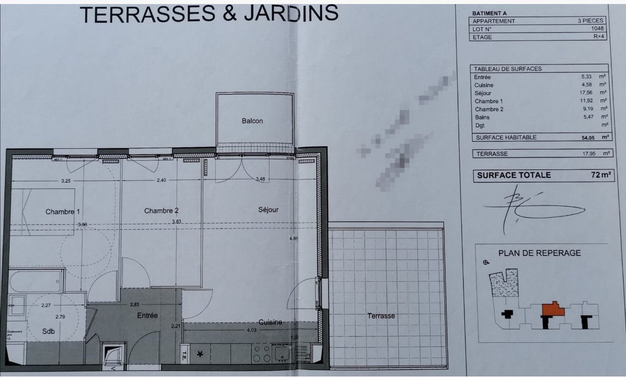 A 10 min du RER A. Nouveauté dans le secteur Le VILLAGE, Résidence de 2014.Appartement lumineux au 4e étage avec ascenseur comprenant, Entrée, Séjour de 22m2 ouvert sur une cuisine Américaine entièrement aménagée et équipée. Un beau balcon Plein SUD et l'atout principal de l'appartement : une grande TERRASSE de 18m2 au calme et sans vis à vis. 2 chambres avec placards, dressing et une salle de bain avec WC. Une place de parking en sous sol sécurisé Commodités : 5 minutes à pieds des commerces et Gare de Poissy à environ 10 mn à pieds. Parc du Peuple de l'herbe et Nelson Mandela à 2 min à pied. Copropriété de 2 lots - dont 1 lots habitation. (Pas de procédure en cours). Charges annuelles : 2500 euros.